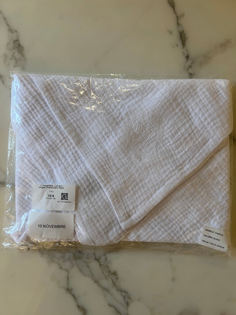 10 Novembre – Lot de 2 langes Charlie blanc Neuf