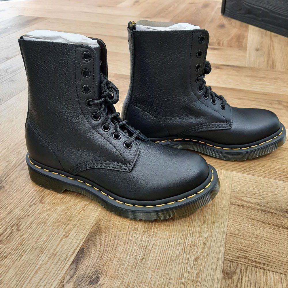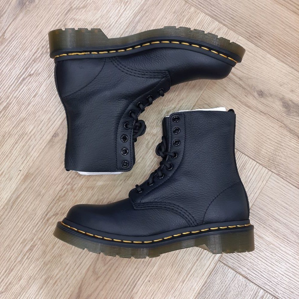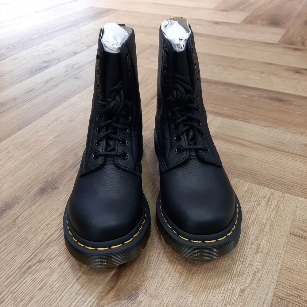 La 1460 PASCAL EN CUIR VIRGINIA : une boots au cuir doux et au grain fin qui a été traité pour un fini lisse et souple. Il est généralement teint et décliné dans de nombreux coloris.