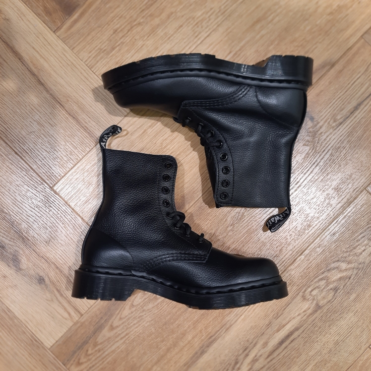 Les 1460 Pascal conservent toute l’histoire et le côté résistant et durable du modèle originel iconique à 8 œillets. Mais aussi son ADN : la languette à logo au talon, les surpiqûres apparentes et les rainures soulignant la semelle à coussin d’air. Et maintenant, elles sont présentées dans une version monochrome. Celle ci est réalisée à partir du cuir Virginia ultra-doux qui sera immédiatement agréable à porter.