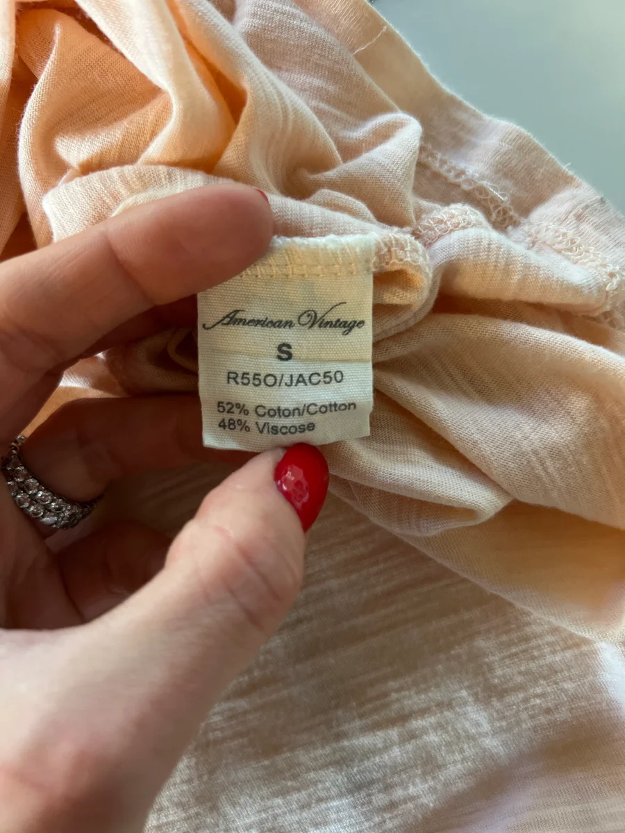 Très bon état général seulement étiquettes composition coupées Marque : American Vintage Taille S 52% Coton et 49% Viscose Pour la longueur je mesure 1m71 Prix d’achat Neuf: 40€