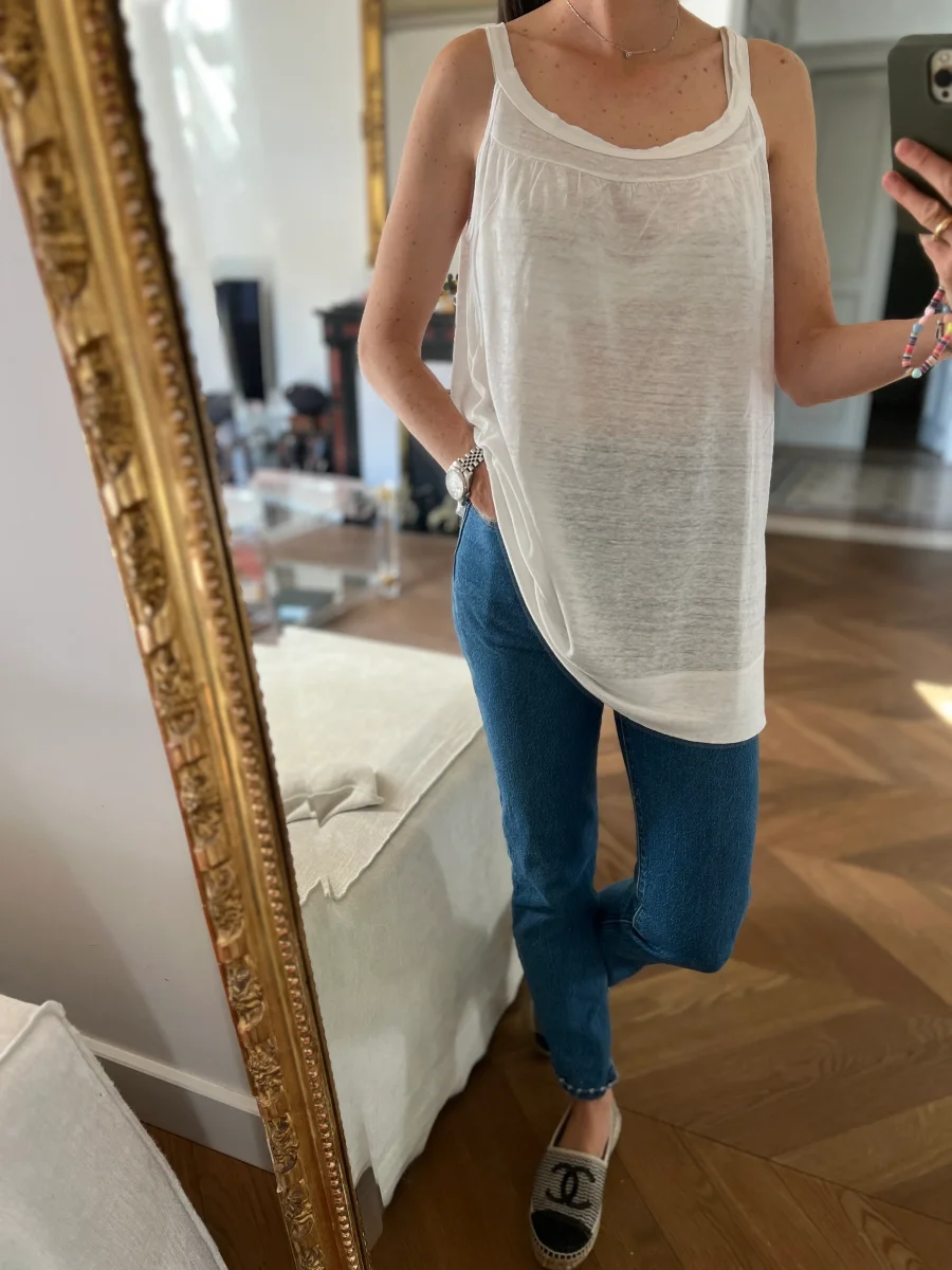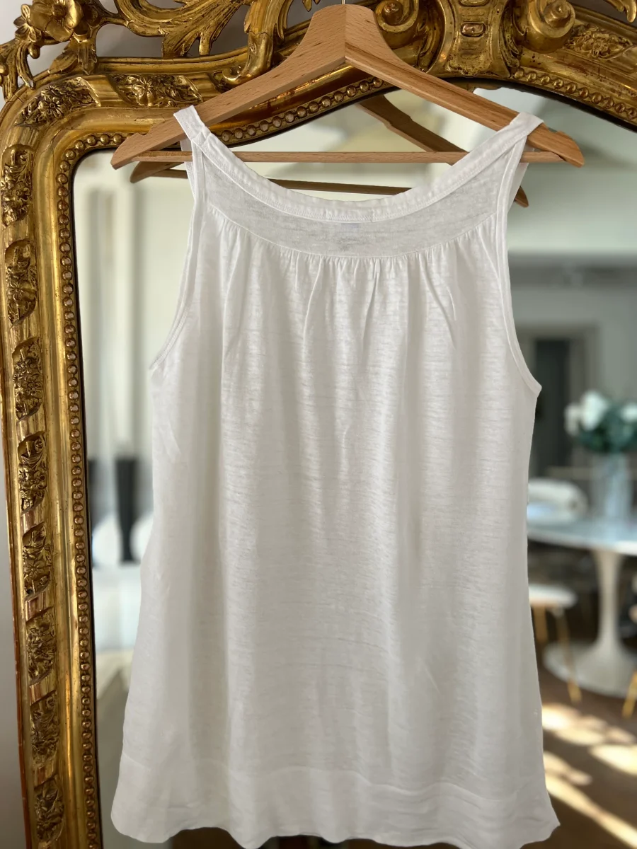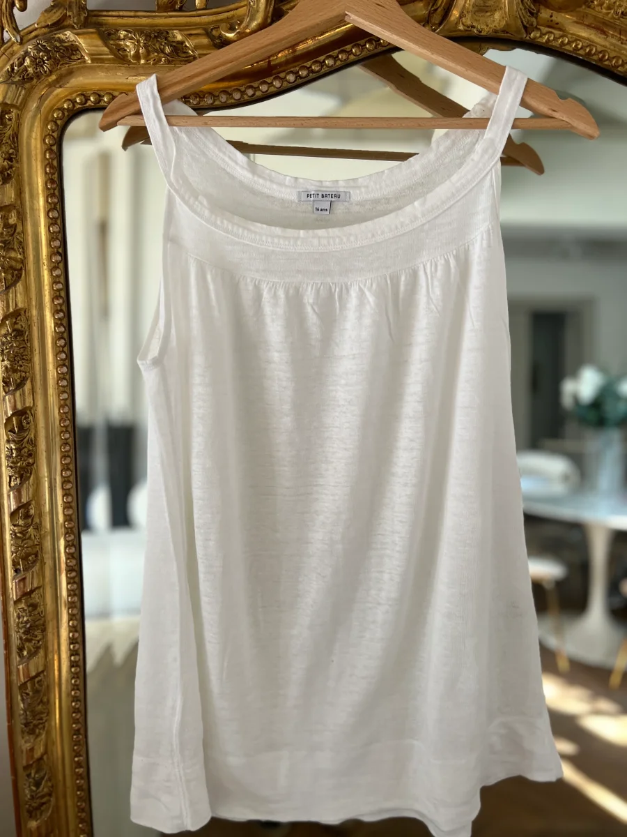 Anne Charlotte Debardeur Petit Bateau en lin blanc