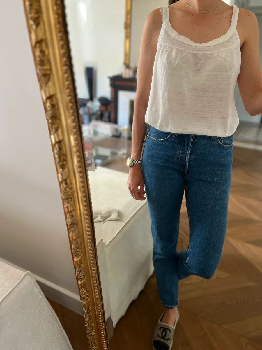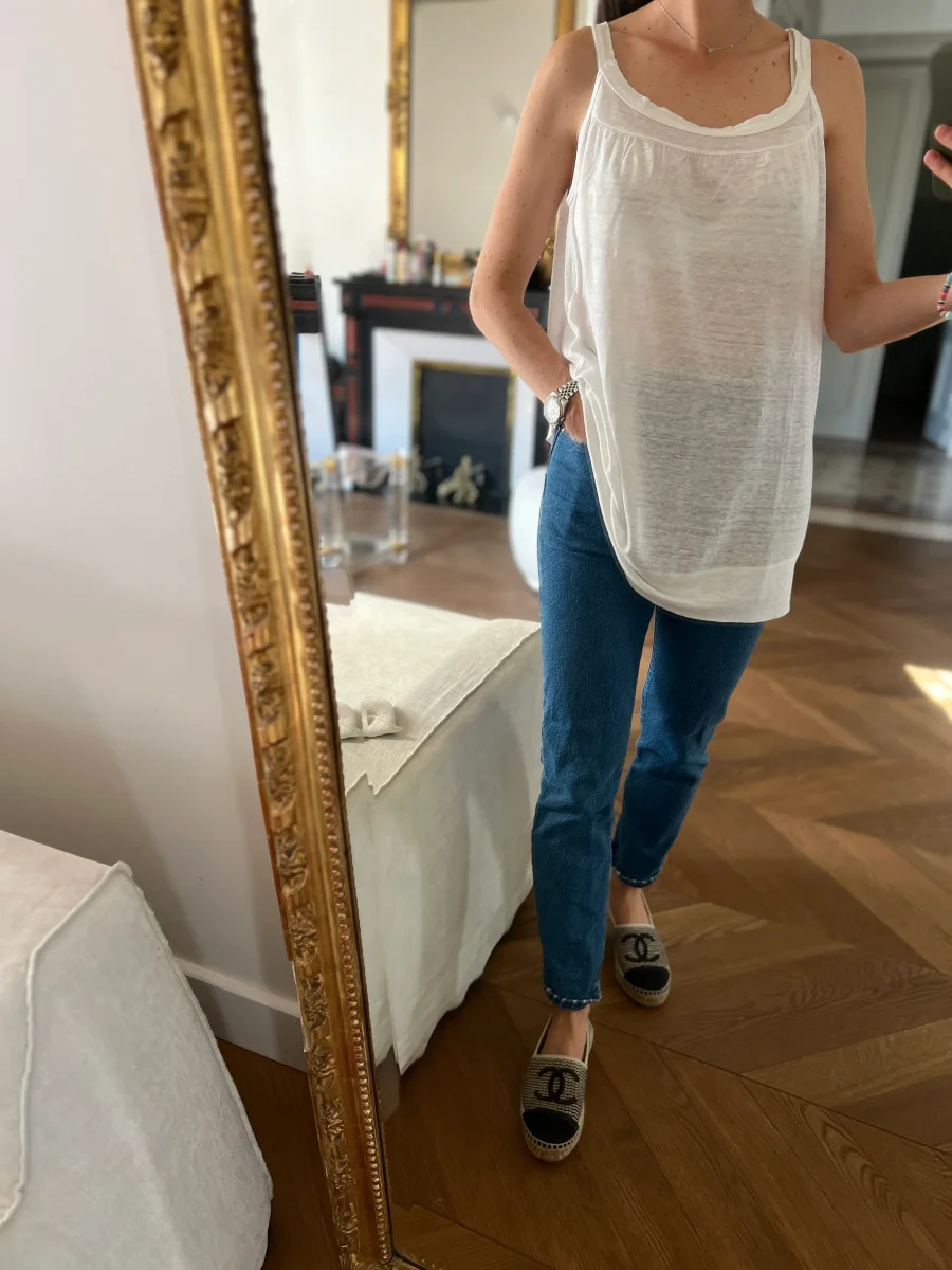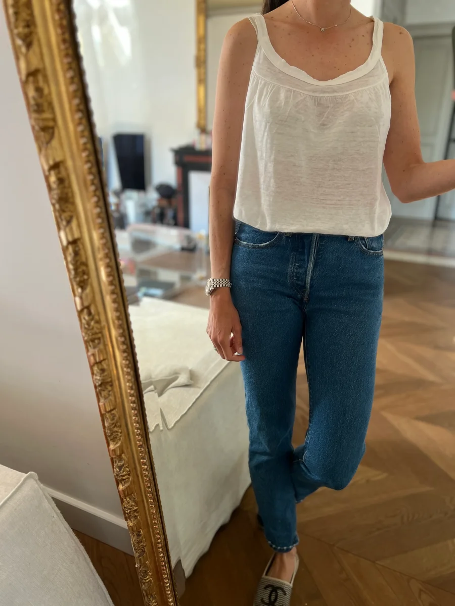 Anne Charlotte Debardeur Petit Bateau en lin blanc