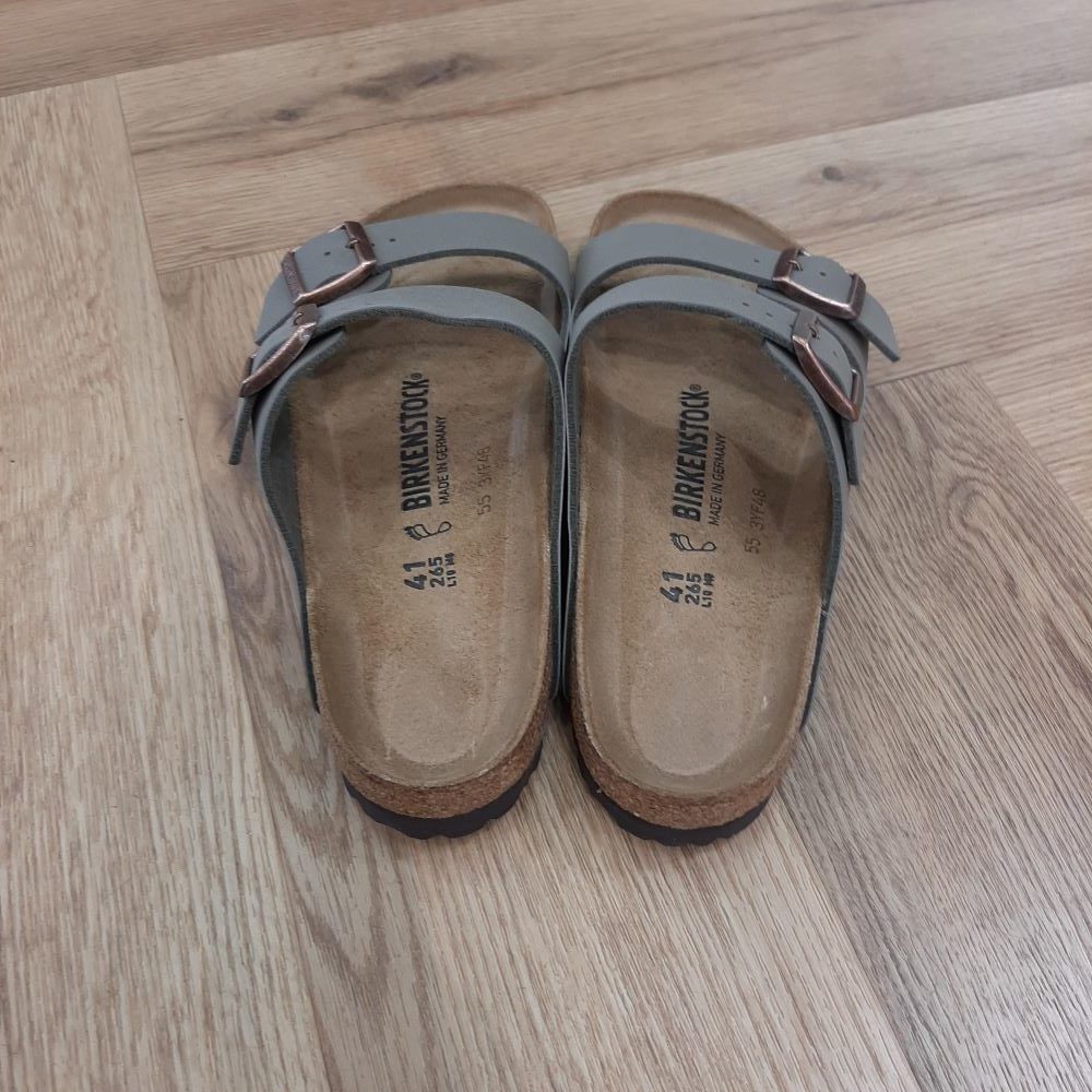 Lit de pied anatomique en liège et latex Dessus: Birko-Flor® Semelle de propreté: cuir velours Semelle: EVA Détails: bride avec deux boucles en métal réglables individuellement “Made in Germany” Largeur: étroite Ref: 0151213