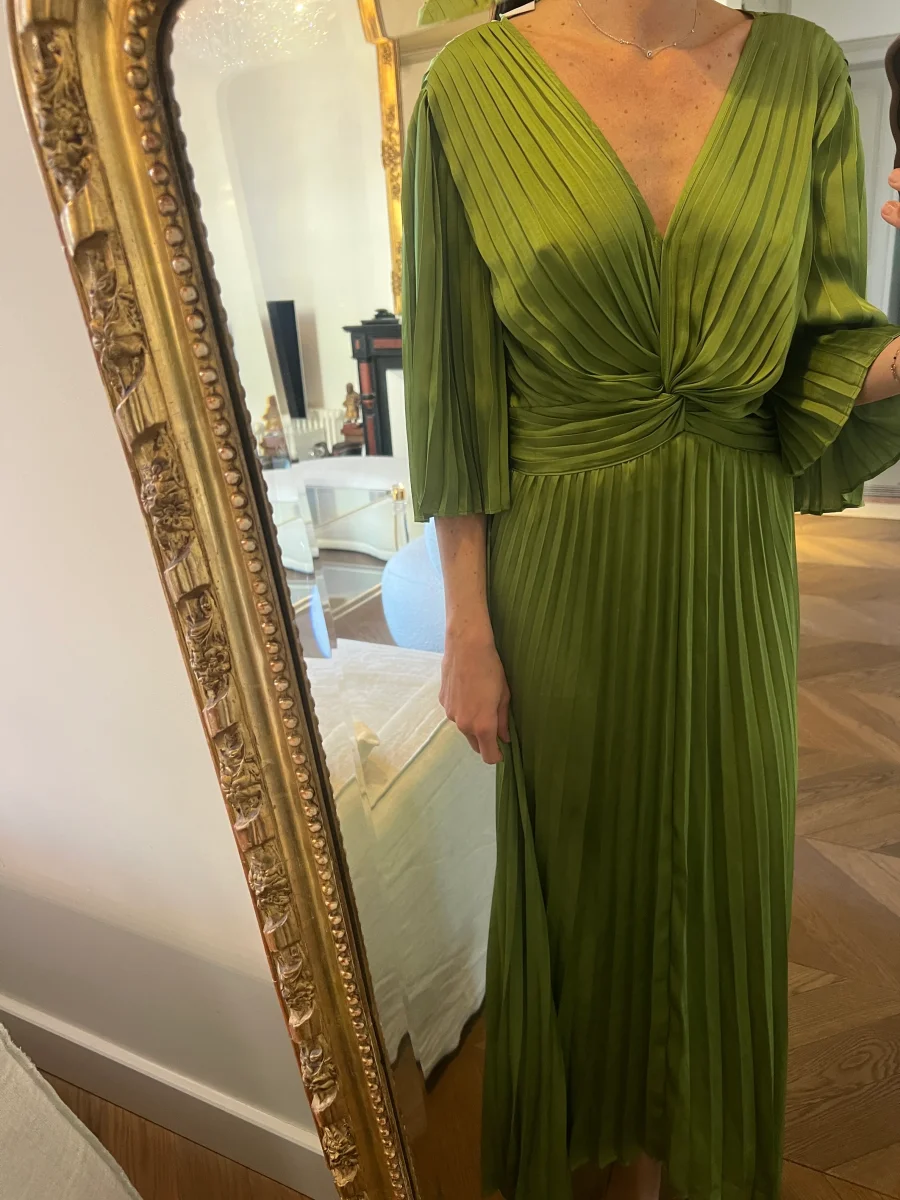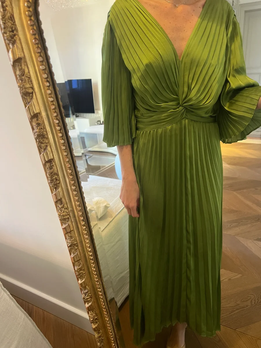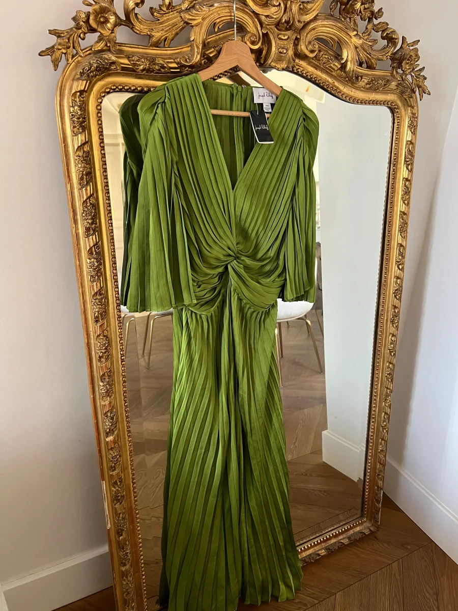 Aurianne Sinacola – Joseph Ribkoff Robe mi-longue plissée en satin Neuve