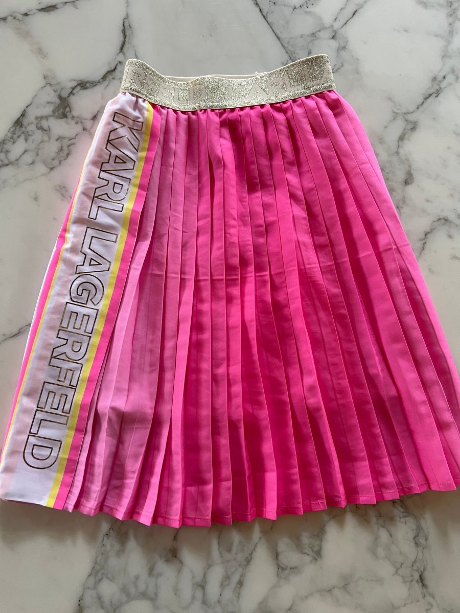 Aurianne Sinacola – Karl Lagerfeld Jupe colorée plissée ceinture dorée T.6 ans