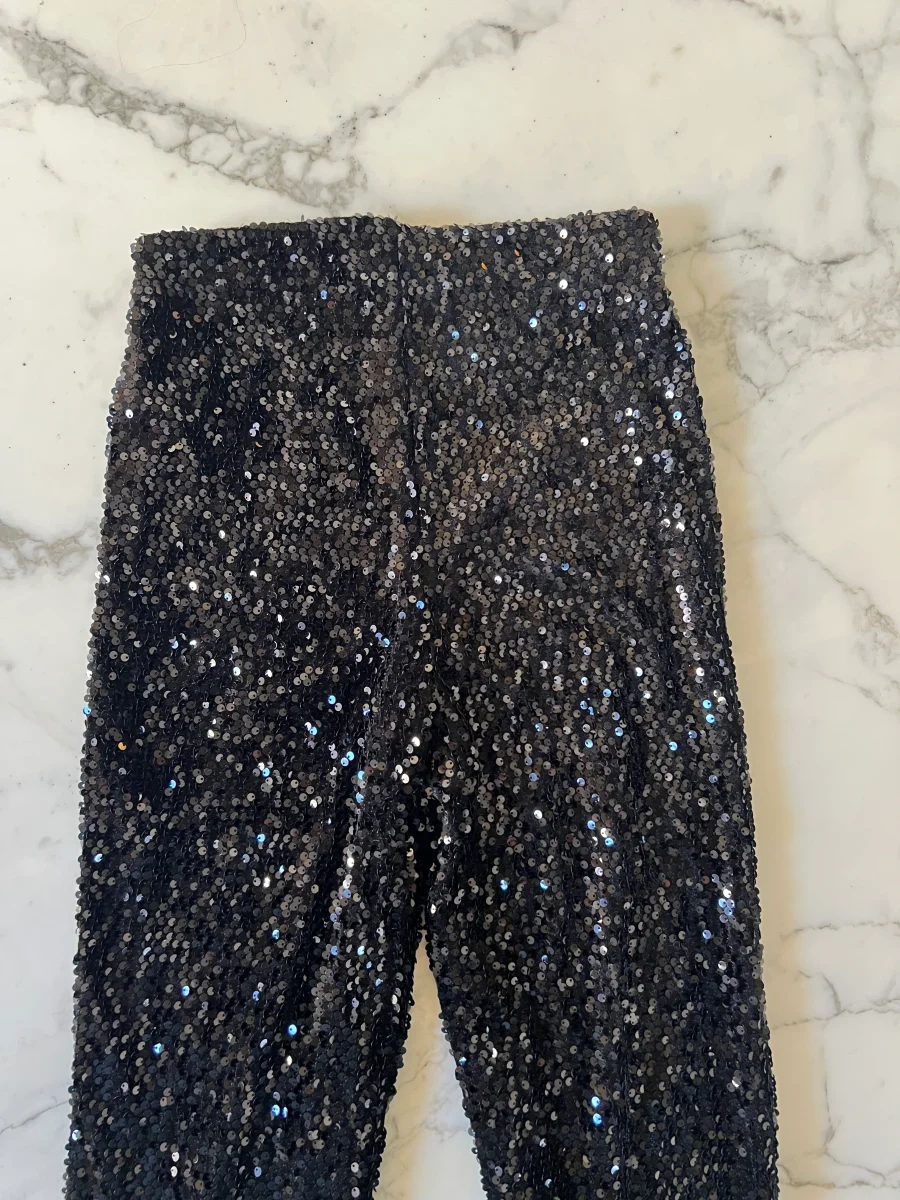 Aurianne Sinacola – Primark pantalon pailleté noir évasé