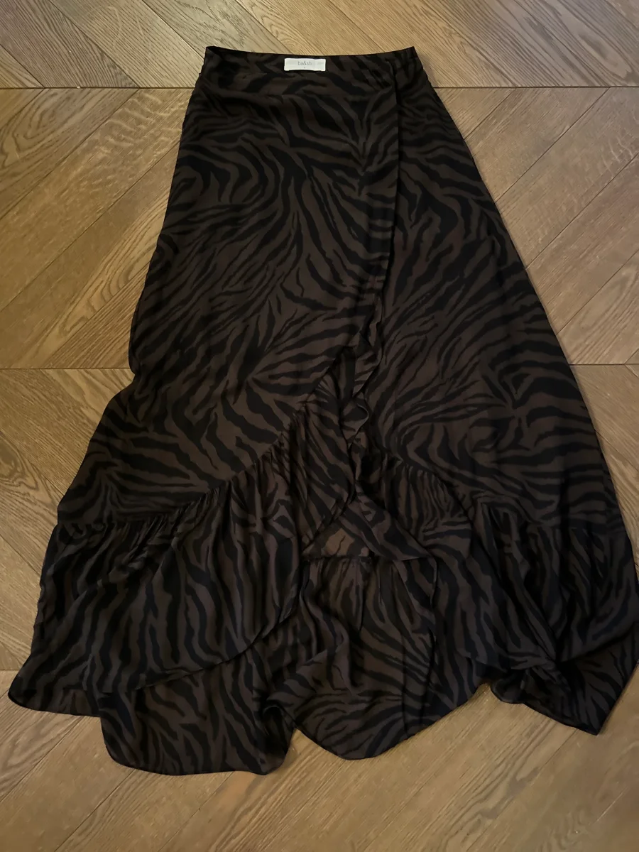 Très bon état (Petite déchirure en bas de la jupe cf.photos)Marque : Ba&sh Modèle : Teddy Taille 0 100% Viscose Pour la longueur je mesure 1m71 Prix d’achat estimé neuf 244€