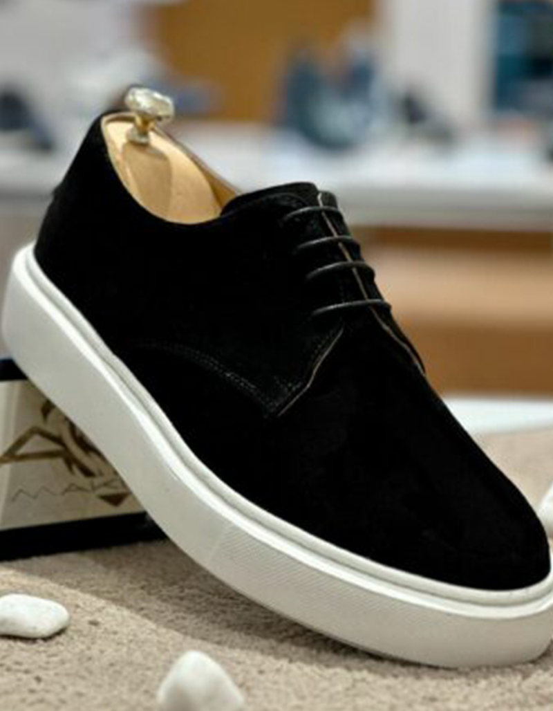 Adoptez un style tendance avec les Baskets en cuir et daim noir – 8912. Confortables et élégantes, elles offrent une parfaite combinaison entre modernité et qualité pour un look sportif et raffiné.