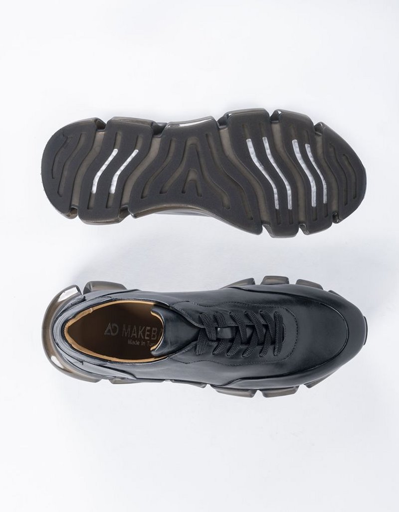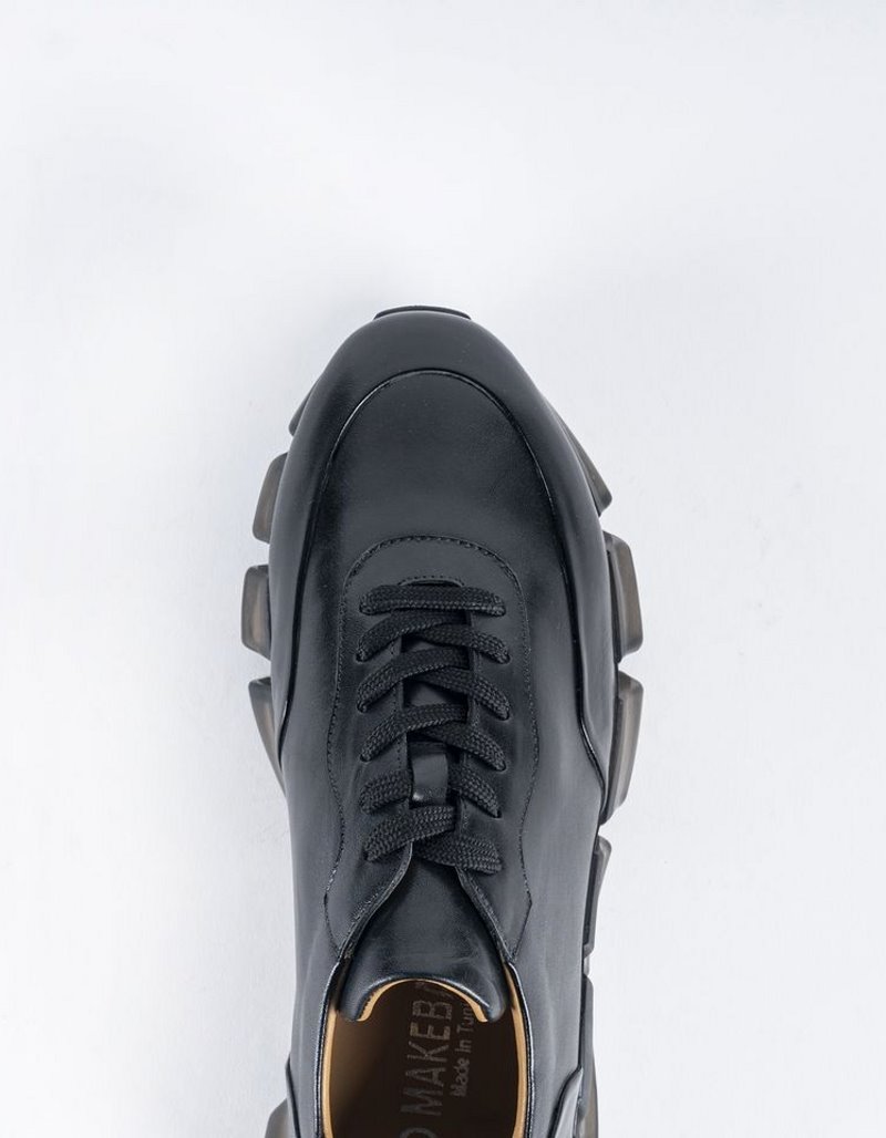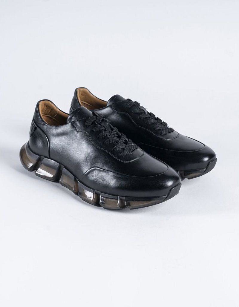 Baskets légères en cuir noir, semelles intérieures orthopédiques et semelles extérieures EVA.