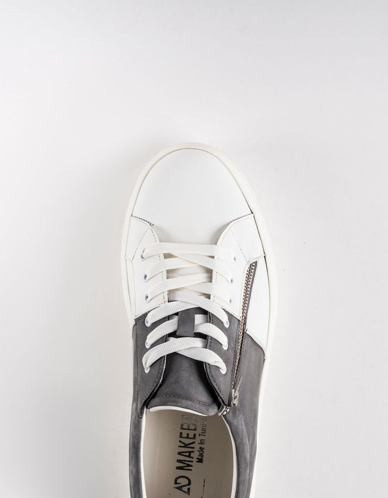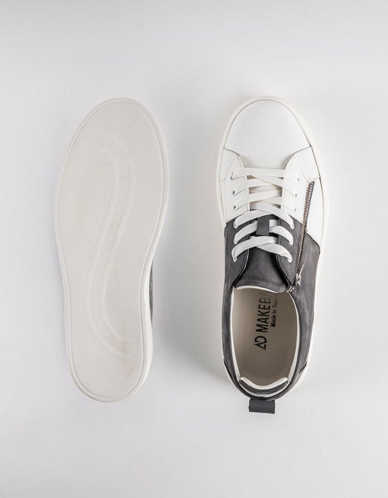 Baskets légères en cuir Blanc/Gris semelles intérieures orthopédiques et semelles extérieures EVA.