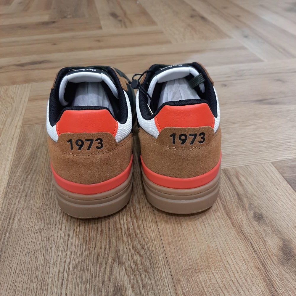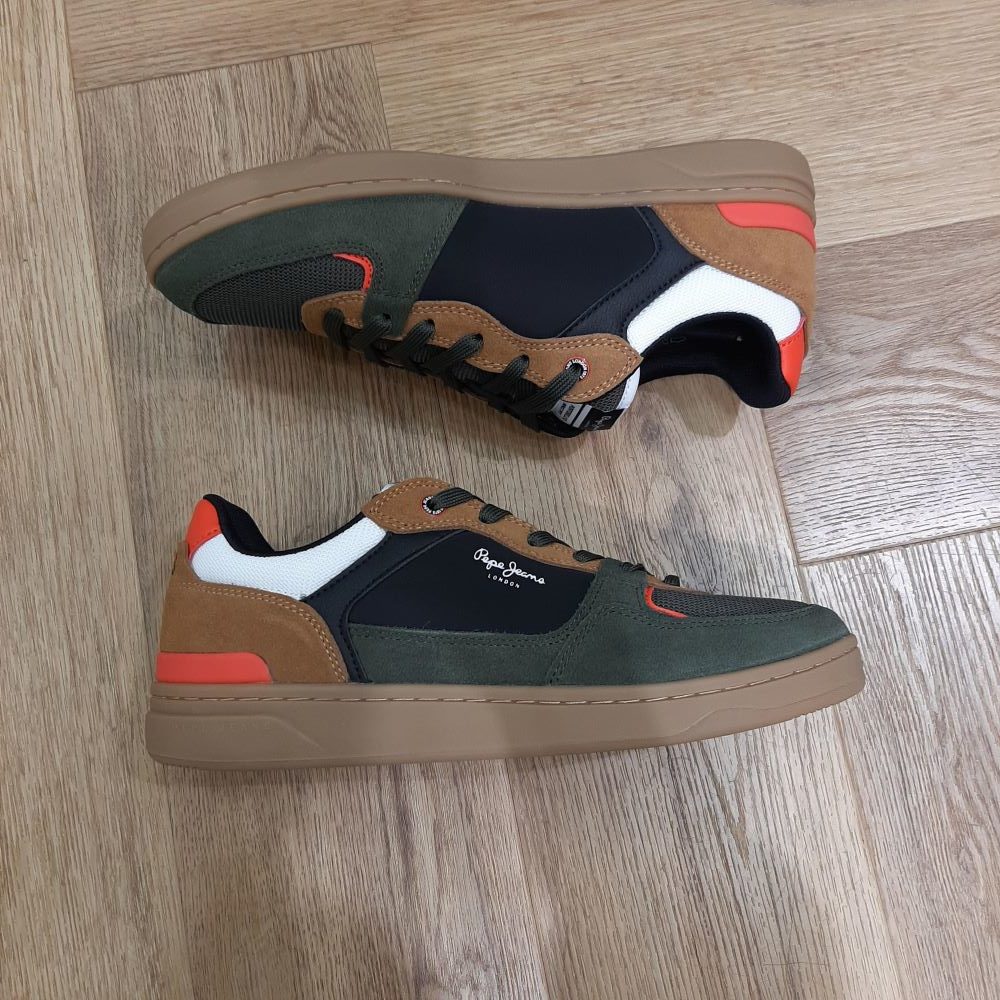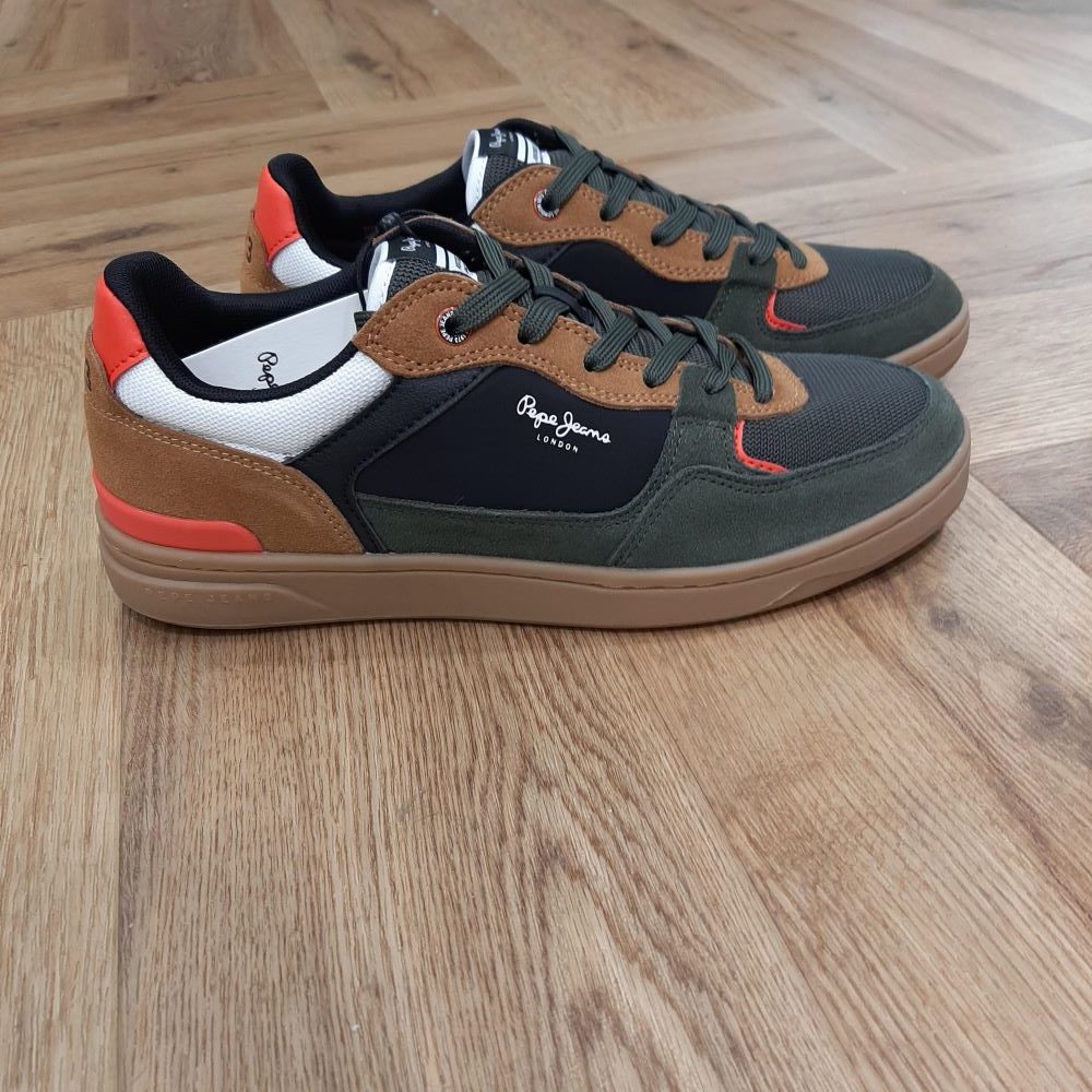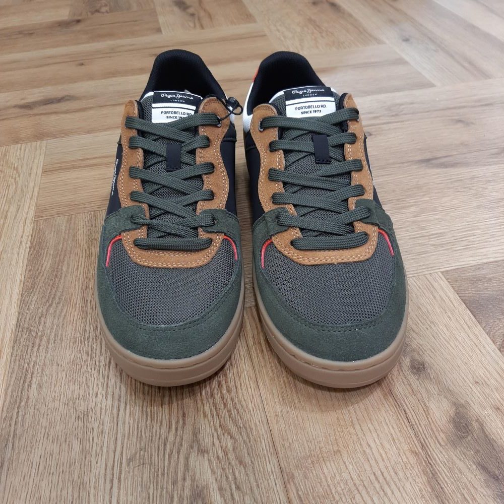 Détails du produit – Sneakers rétro en daim – Tissu mesh sur le cou-de-pied et les côtés – Contraste de couleurs – Fermeture à lacets – Logo PEPE JEANS thermocollé sur le côté – Semelle intérieure thermoformée et amovible – Étiquette avec logo PEPE JEANS sur la languette – Détail en daim sur le talon avec logo 1973 – Semelle en caoutchouc – Hauteur de la semelle : 3,5 cm Soin Pas de blanchiment Ne pas laver Ne pas sécher en tambour Ne pas nettoyer à sec Ne pas repasser Composition 60% Vache Suède, 30% Polyester, 10% Polyuréthane