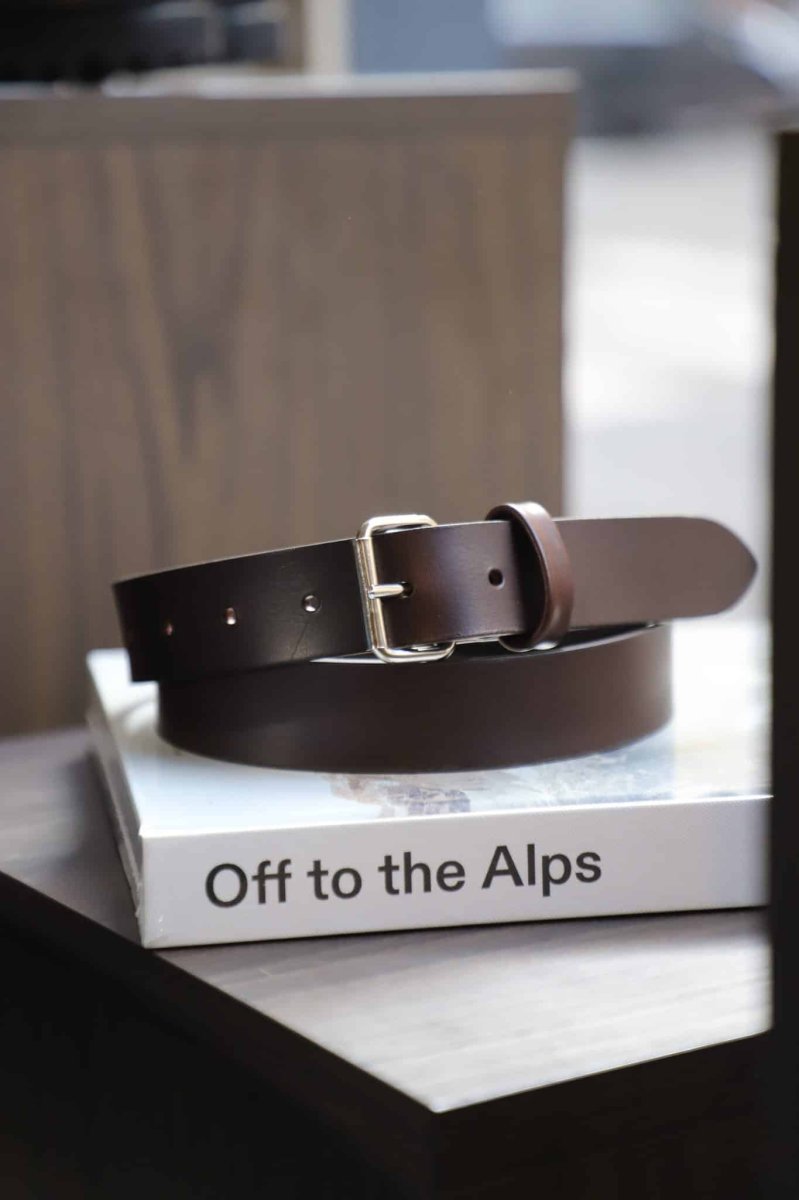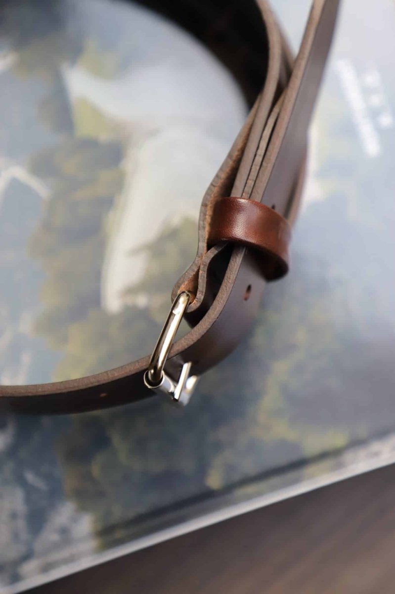 This belt takes place in this collection made to last. Fabrics and finishes have been thought for a daily use and to offer a product of great quality that will last. This full grain cowhide leather will patinate with time and will age with you. No superfluous, only a purely fonctionnal design and a timeless aesthetic. As usual. Black or brown according to your style and your favorites colors. A full thread and a single pass of edge dye that matches the raw aesthetic of the belt. A product as we like, minimalist et essential. The leather…