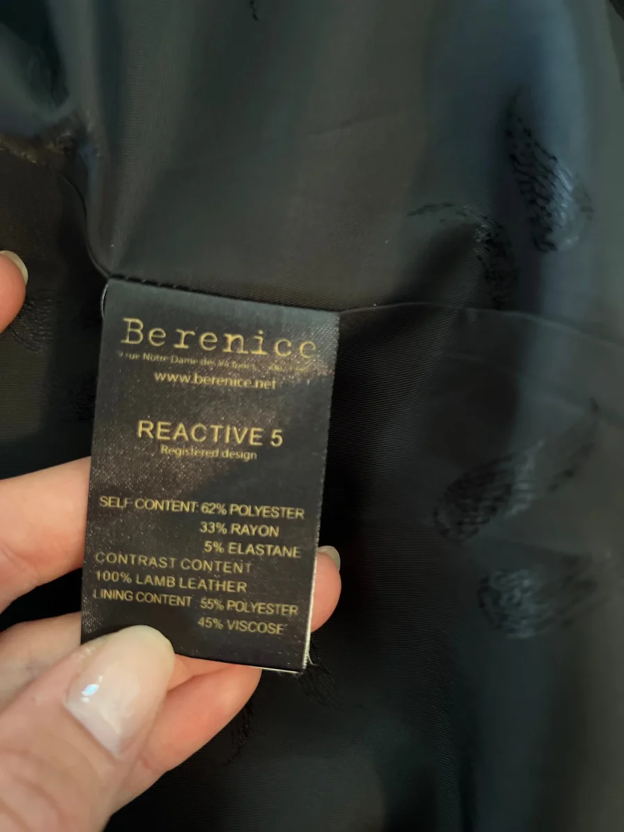 Très bon état Col : 100% cuir Polyester – Rayon et Elasthane Taille S Pour la longueur je mesure 1m71 Prix d’achat estimé neuf 285€
