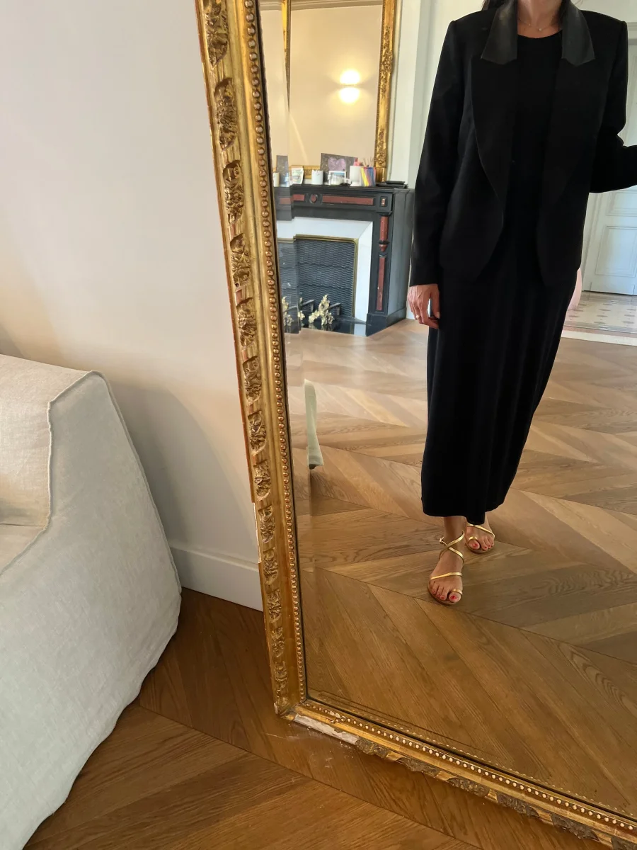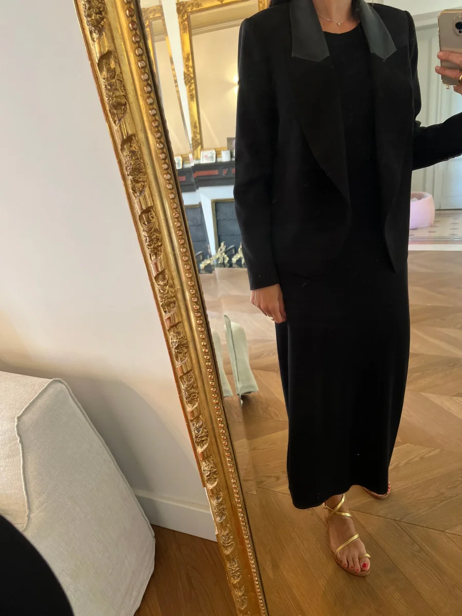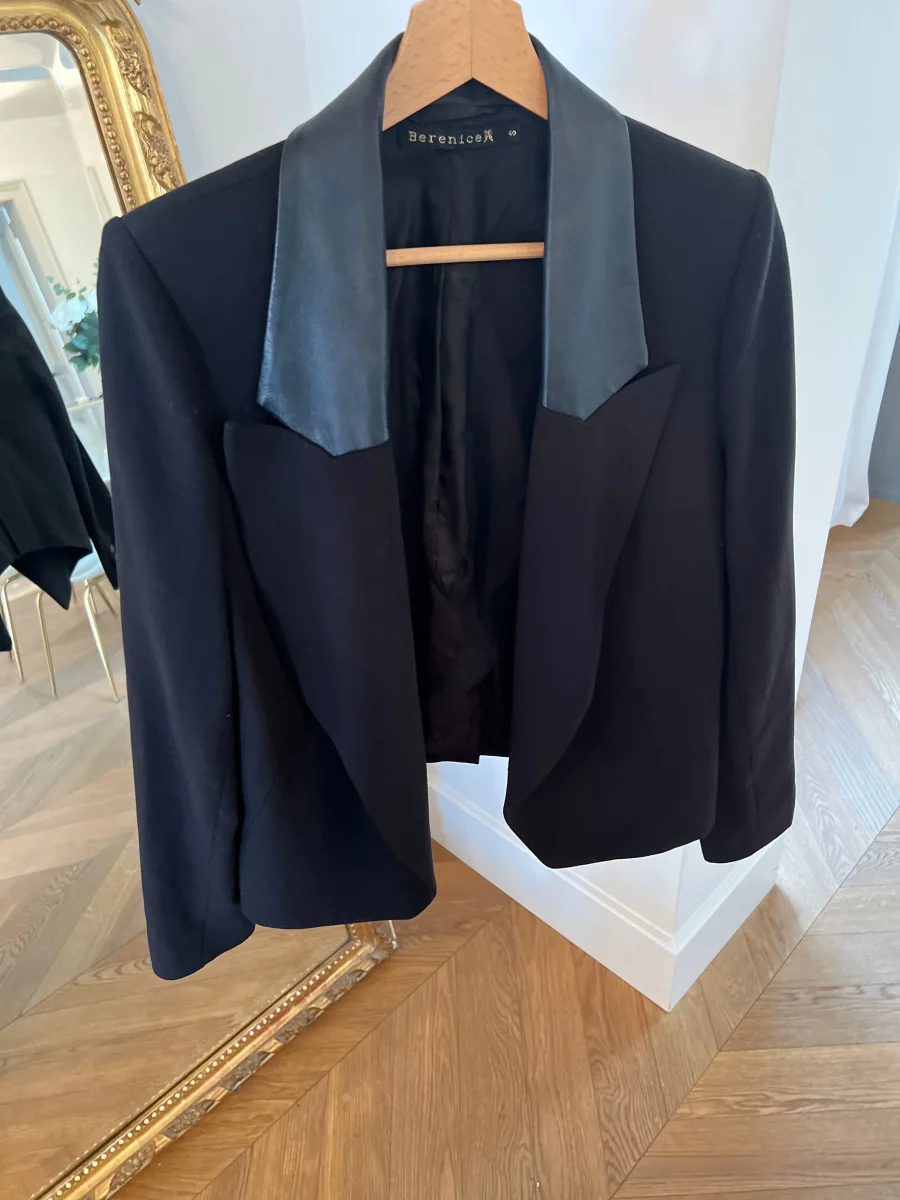 Blazer noir Bérenice col cuir