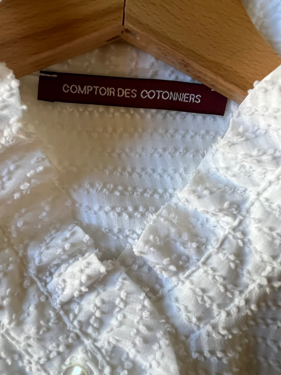 Très bon état général Marque : Comptoir des Cotonniers Taille 38 100% polyester Pour la longueur je mesure 1m71 Prix d’achat estimé neuf 75€