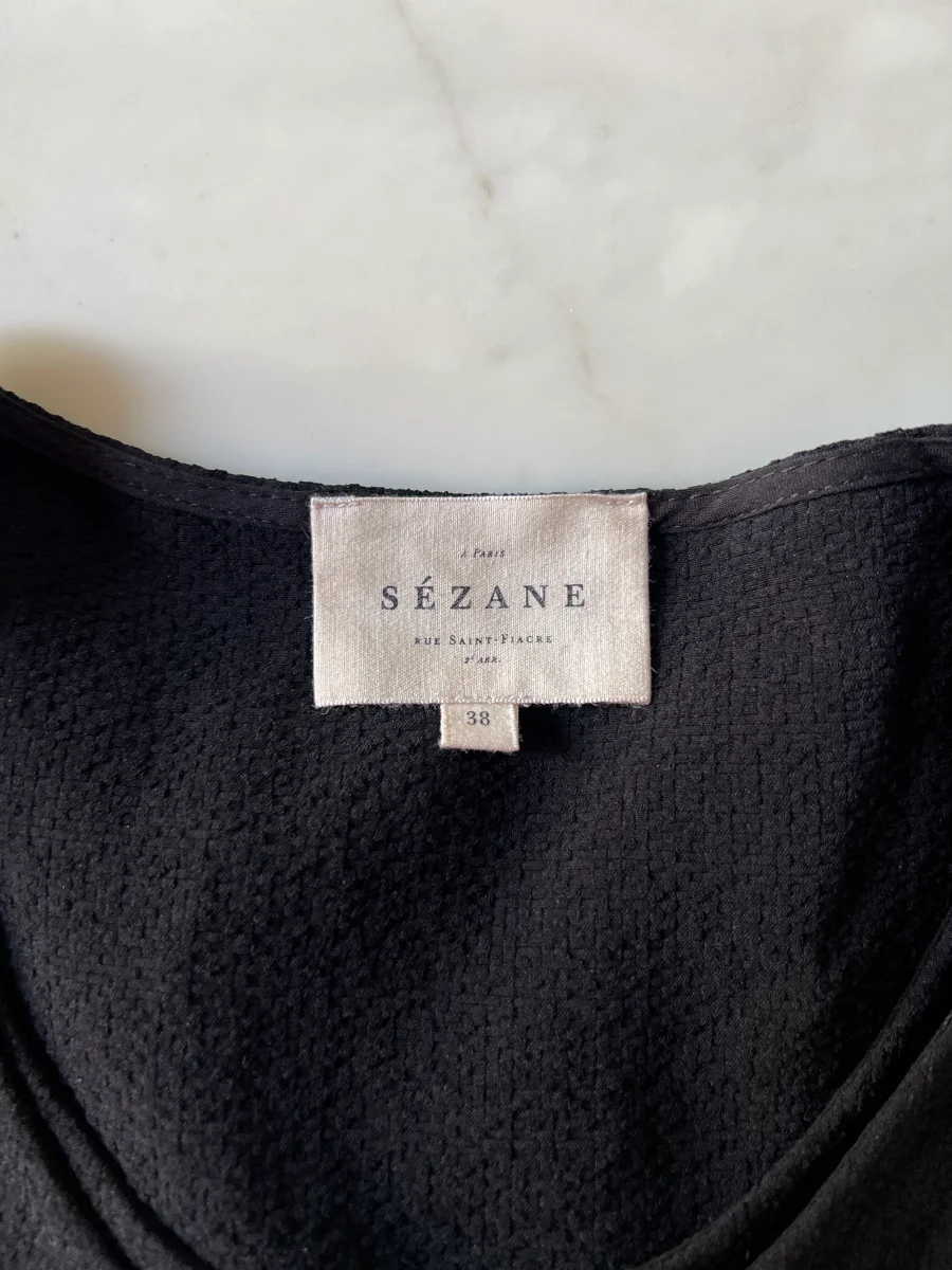 Très bon état Marque : Sezane Taille 38 Polyester et Elasthane Pour la longueur je mesure 1m71 Prix d’achat estimé neuf 95€