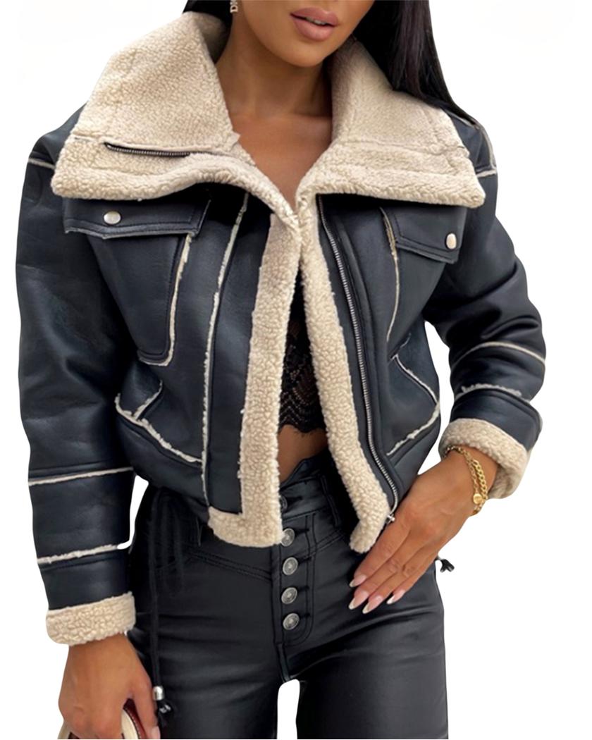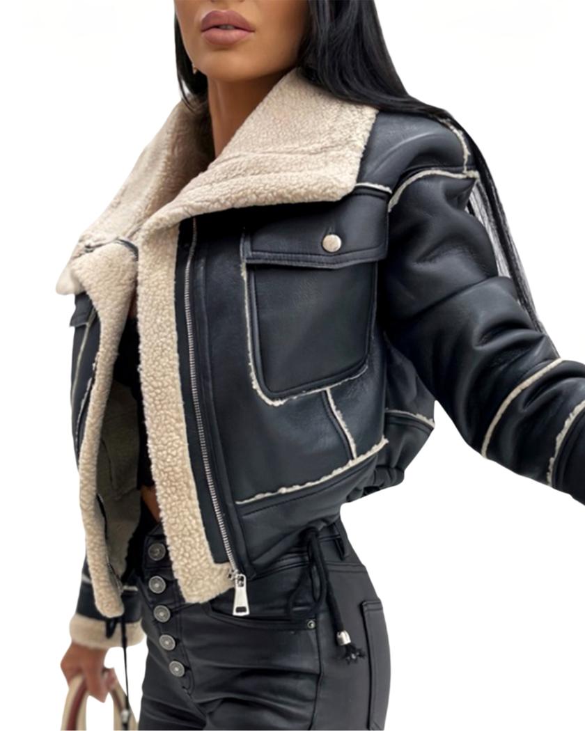 Affrontez le froid dans un nuage de douceur grâce à notre blouson bombardier court style motard. Avec son col fourré doux, il vous garde au chaud tout en vous offrant une allure élégante et tendance. Une pièce polyvalente qui sublimera votre garde-robe avec une touche de glamour.