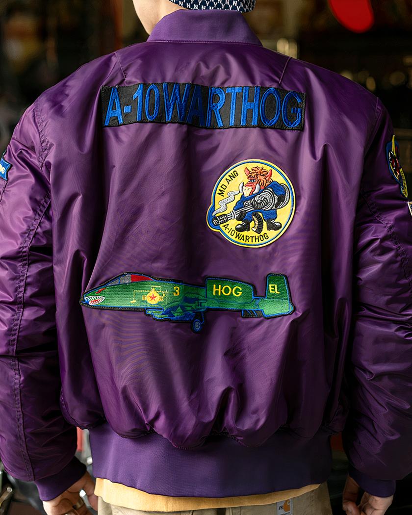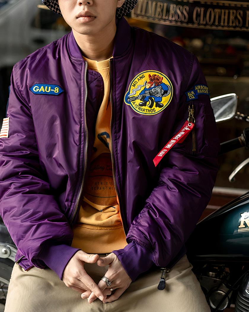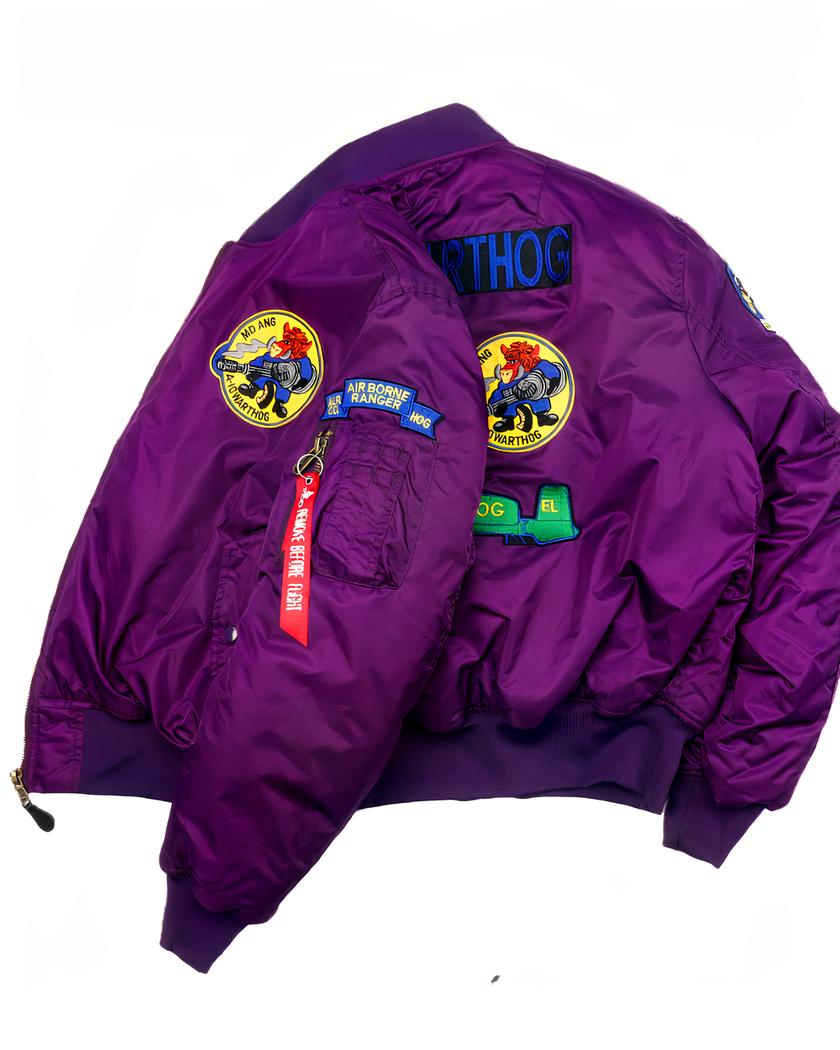 Blouson bomber vintage violet avec broderie pour homme