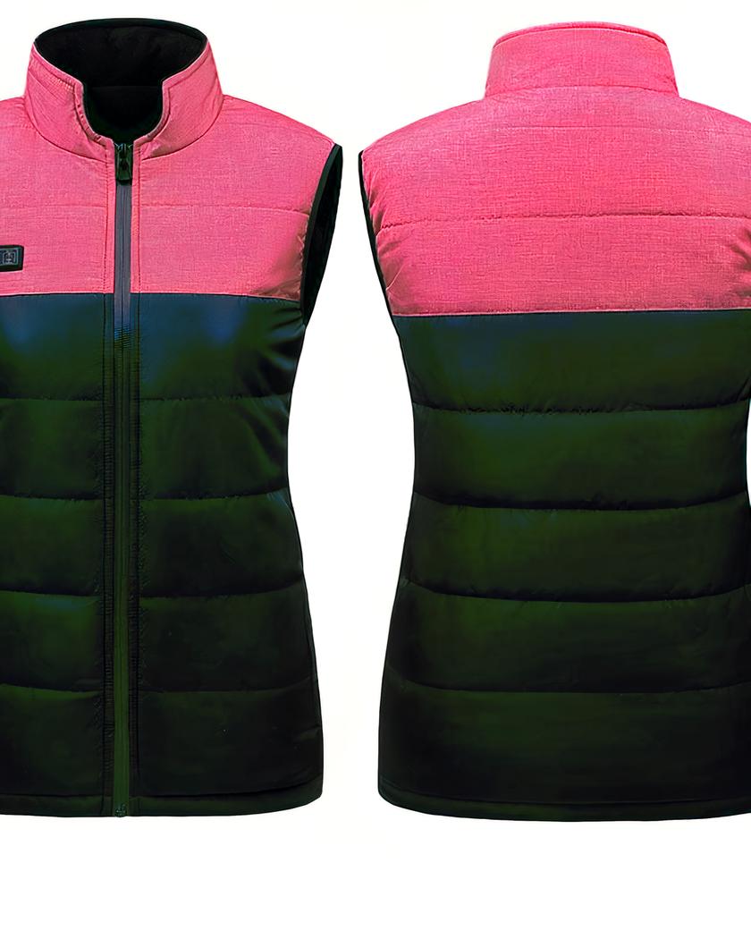 Blouson chauffant femme sans manches col montant rose et noir