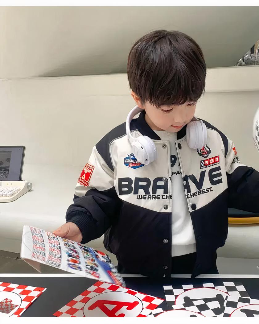 Le blouson de moto en coton pour garçon est un incontournable pour les petits motards en herbe. Son design en rouge, noir et blanc, avec des logos et inscriptions, rappelle le style des motards. Sa matière en coton le rend confortable à porter et les pressions facilitent sa fermeture.