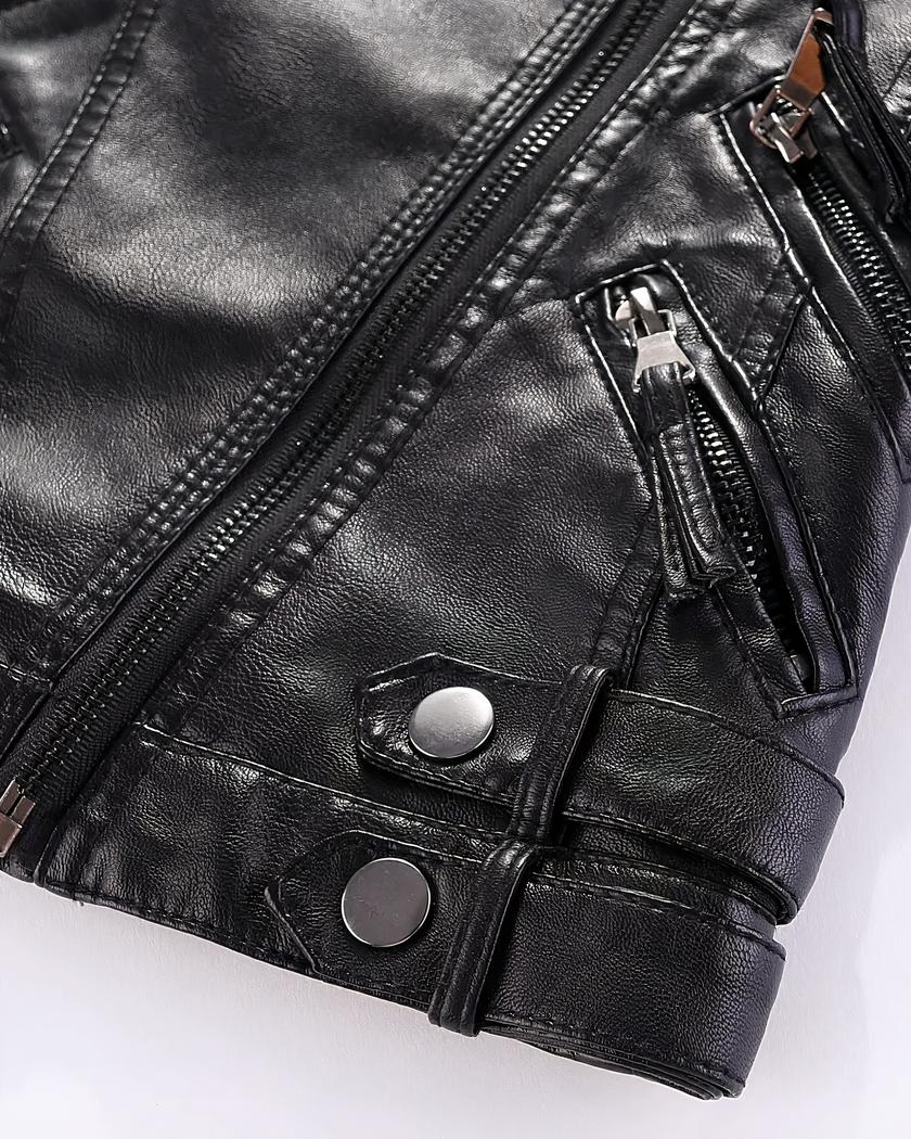 Ce blouson de moto en simili cuir avec fermeture éclair latérale pour enfant est le vêtement parfait entre modernité et élégance. Son effet brillant apporte une touche chic, tandis que sa fermeture éclair latérale lui confère un style asymétrique tendance. Les petits trésors pourront être rangés dans les poches pratiques.