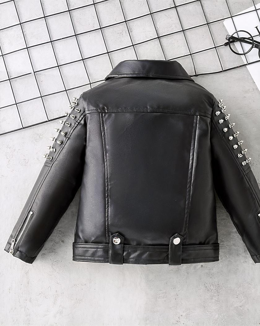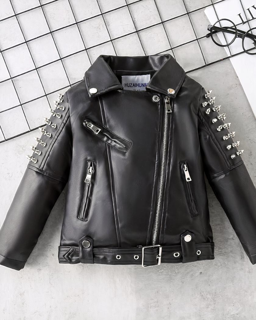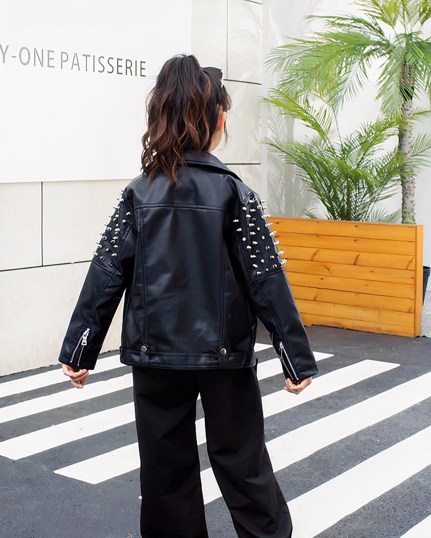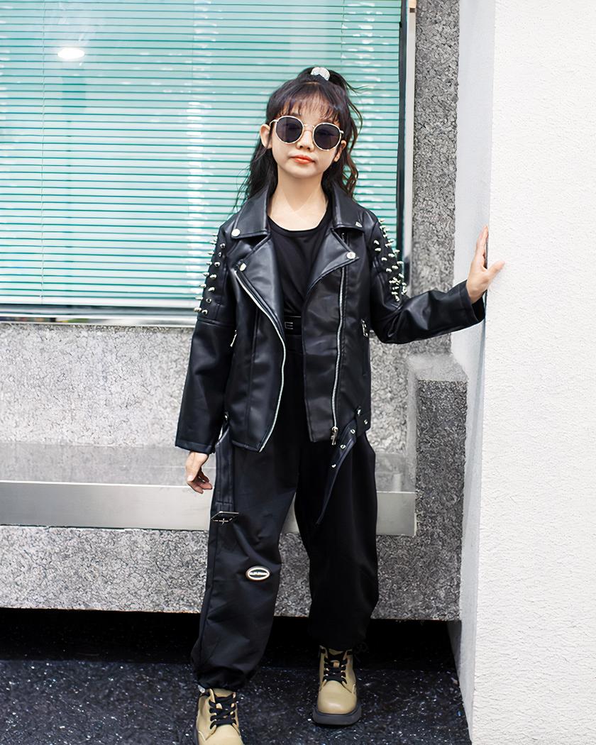 Le blouson de moto noir à clous pour fille est l’incarnation du style rock’n’roll. Avec sa coupe audacieuse, ses clous métalliques, ses poches zippées et sa sangle d’attache en bas, ce blouson promet à votre fille un look de rockeuse affirmée. Elle portera très bien cette pièce classique en similicuir.