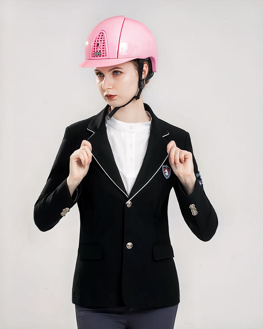 Blouson d’équitation confortable noir à col rabattu pour femme