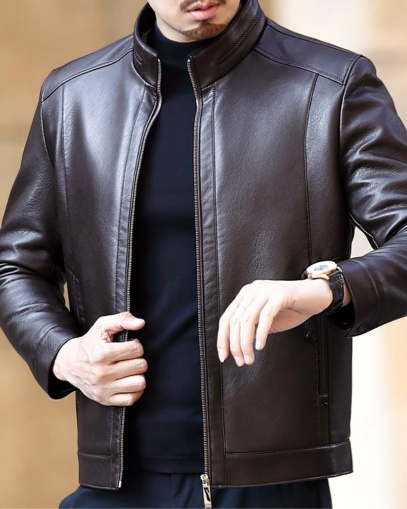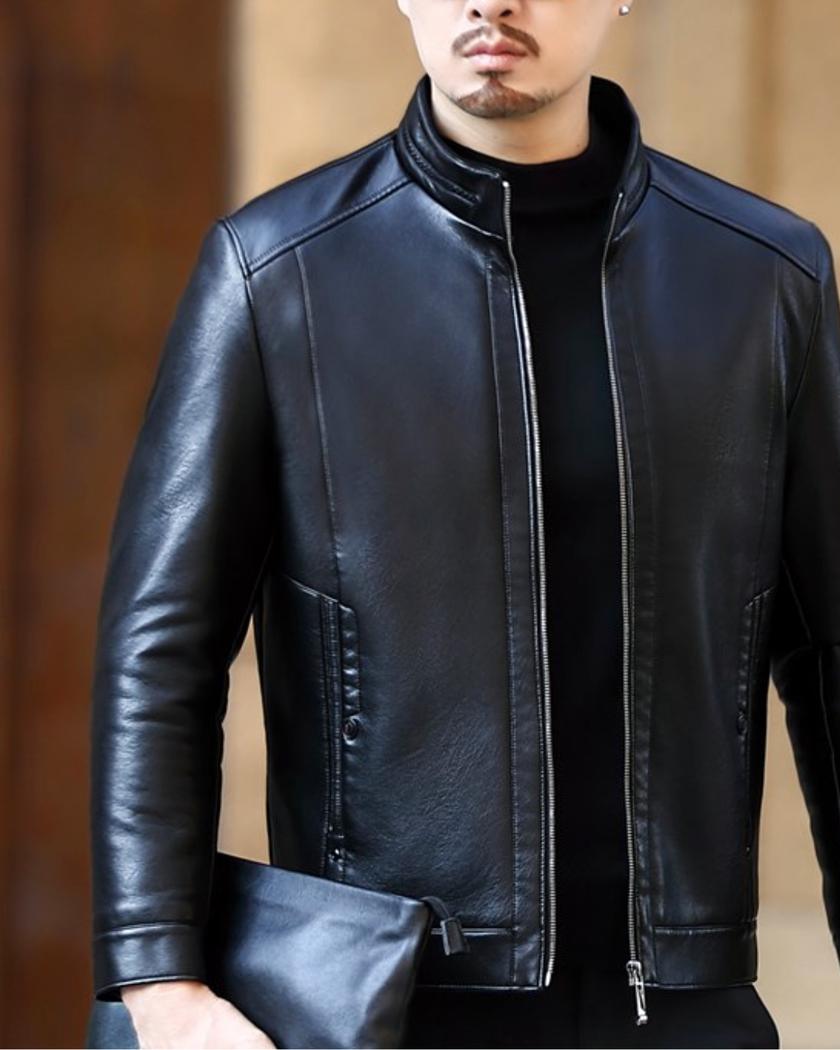 Soyez le premier à laisser votre avis sur “Blouson en cuir à col montant style décontracté”