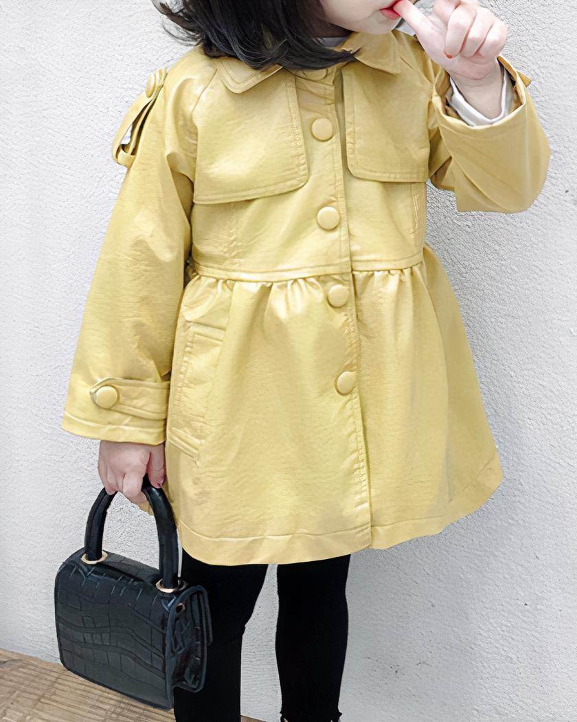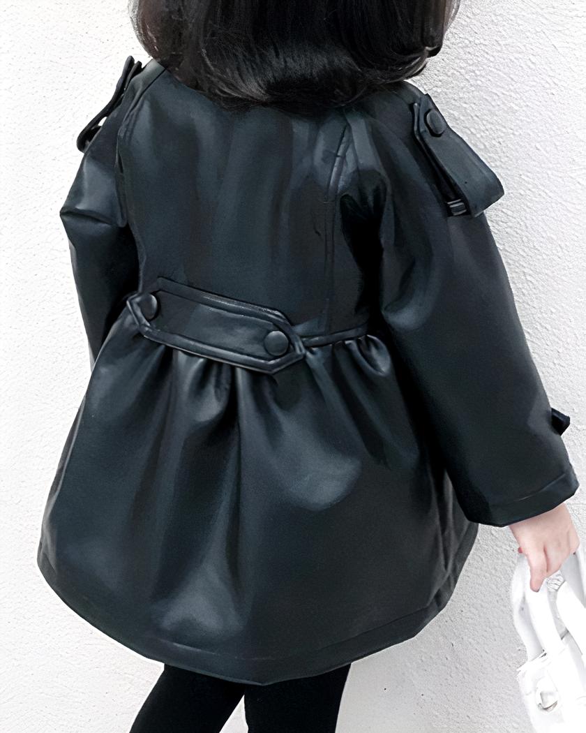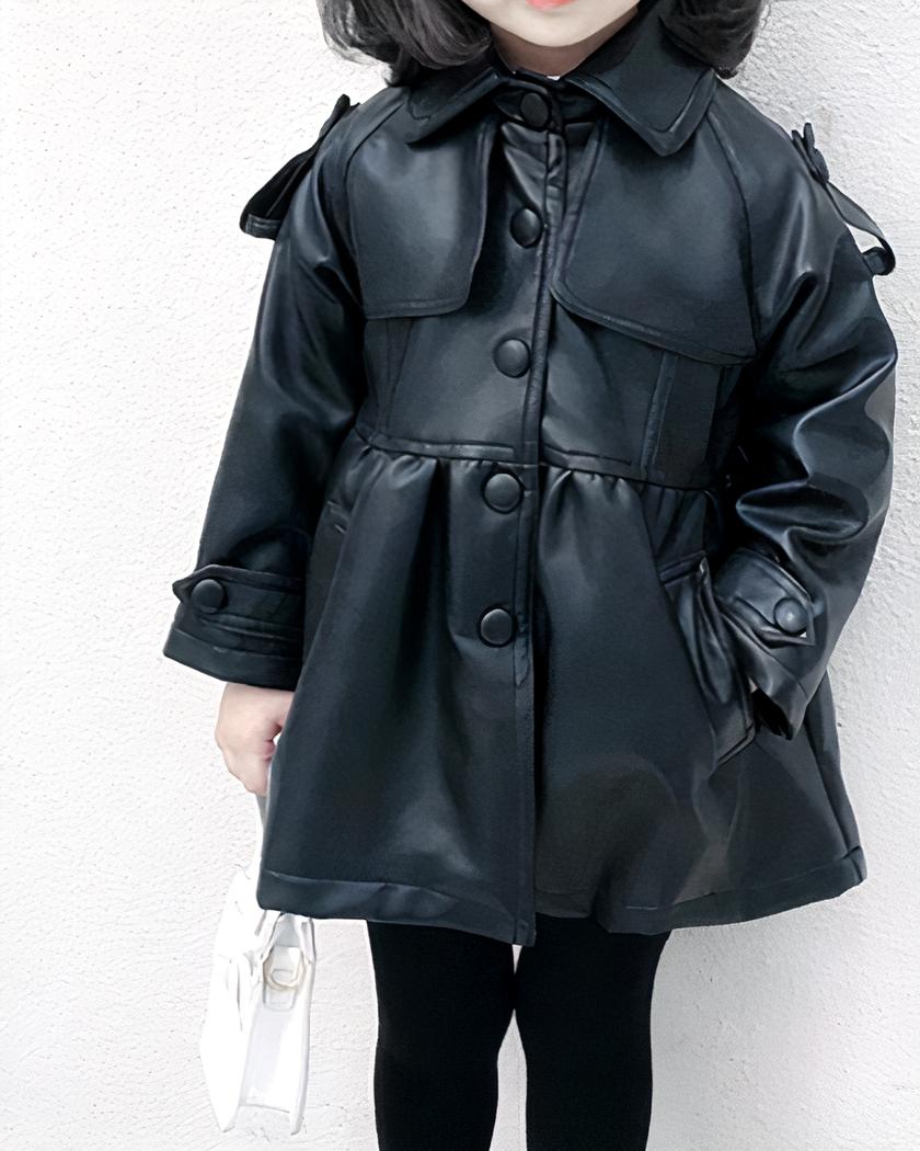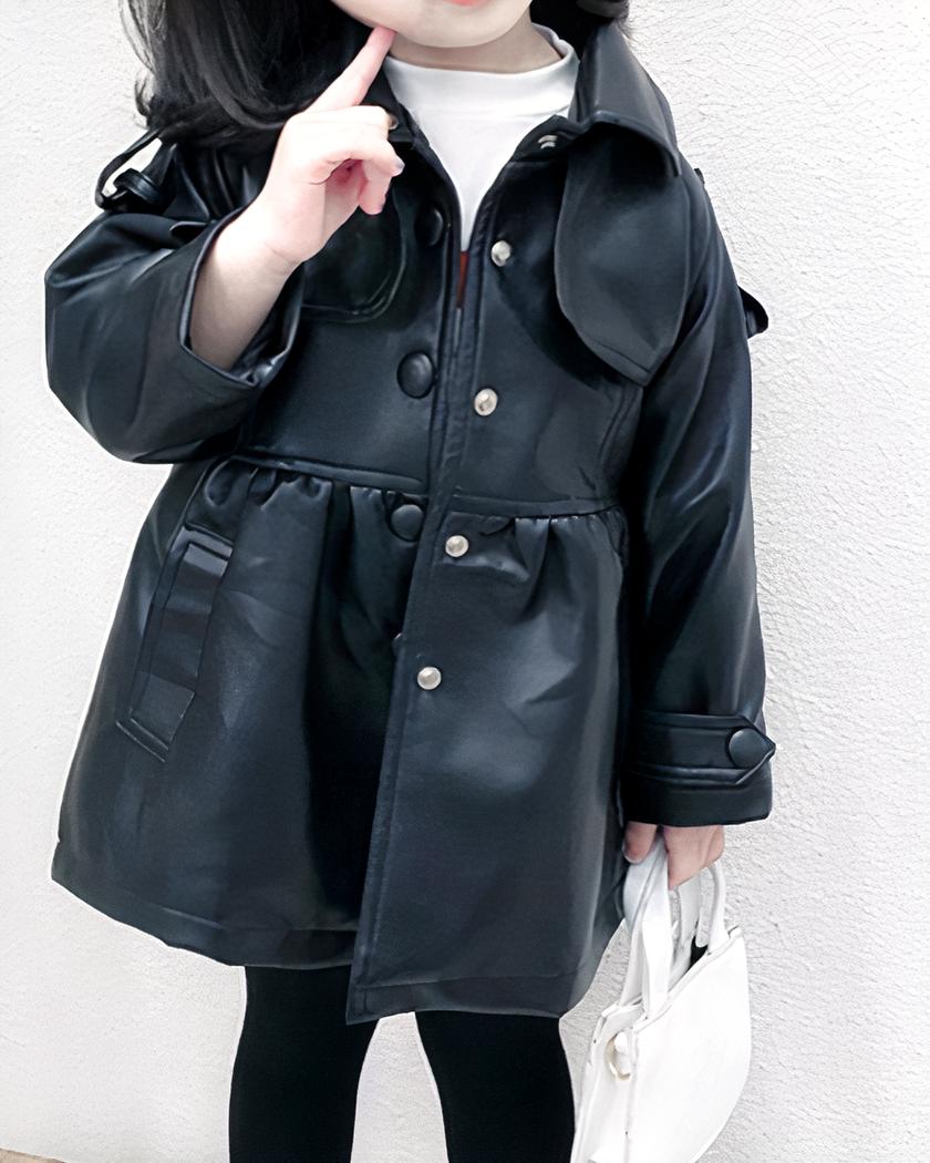 Le blouson en cuir synthétique élégant pour fille est un vêtement chic conçu pour les petites princesses. Avec son style mi-long, son col à rabat et son boutonnage simple, il convient parfaitement aux filles de 2 à 6 ans. Idéal pour la mi-saison, il apporte une touche de raffinement à toute tenue.