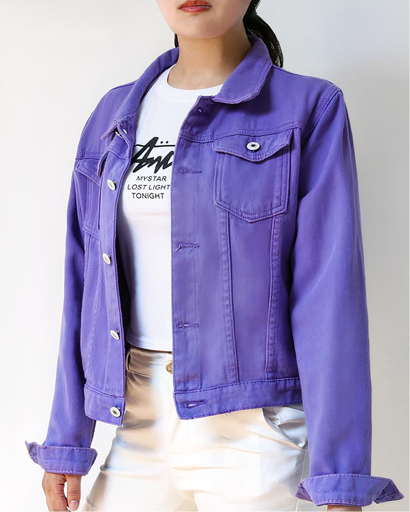 Soyez le premier à laisser votre avis sur “Blouson en jean violet décontracté pour femme”
