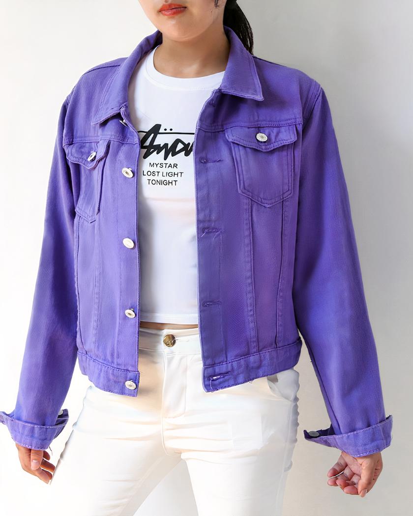 Blouson en jean violet décontracté pour femme