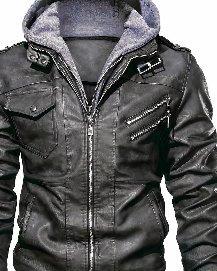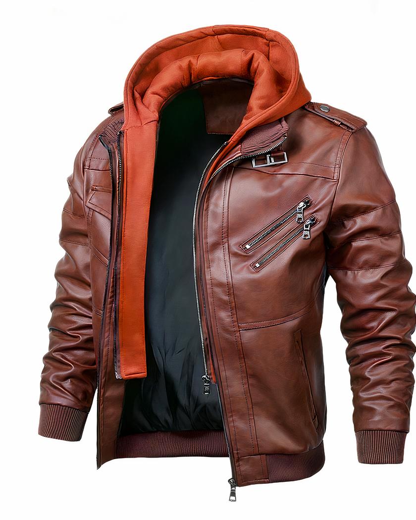 Le blouson en simili cuir à capuche et col montant pour homme est un incontournable pour ceux qui recherchent à la fois style et confort. Ce blouson offre non seulement une apparence élégante, mais aussi une durabilité exceptionnelle. Il vous protège efficacement contre les intempéries.