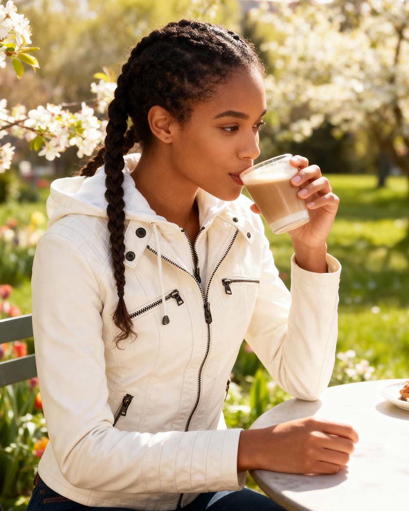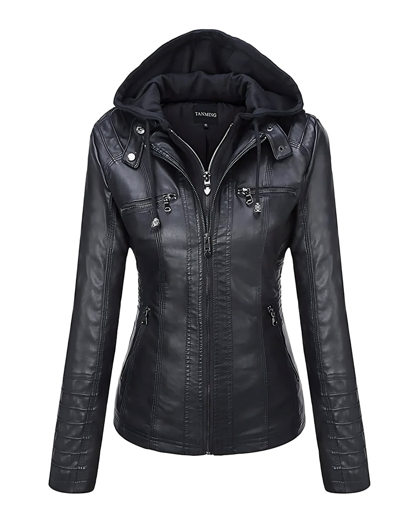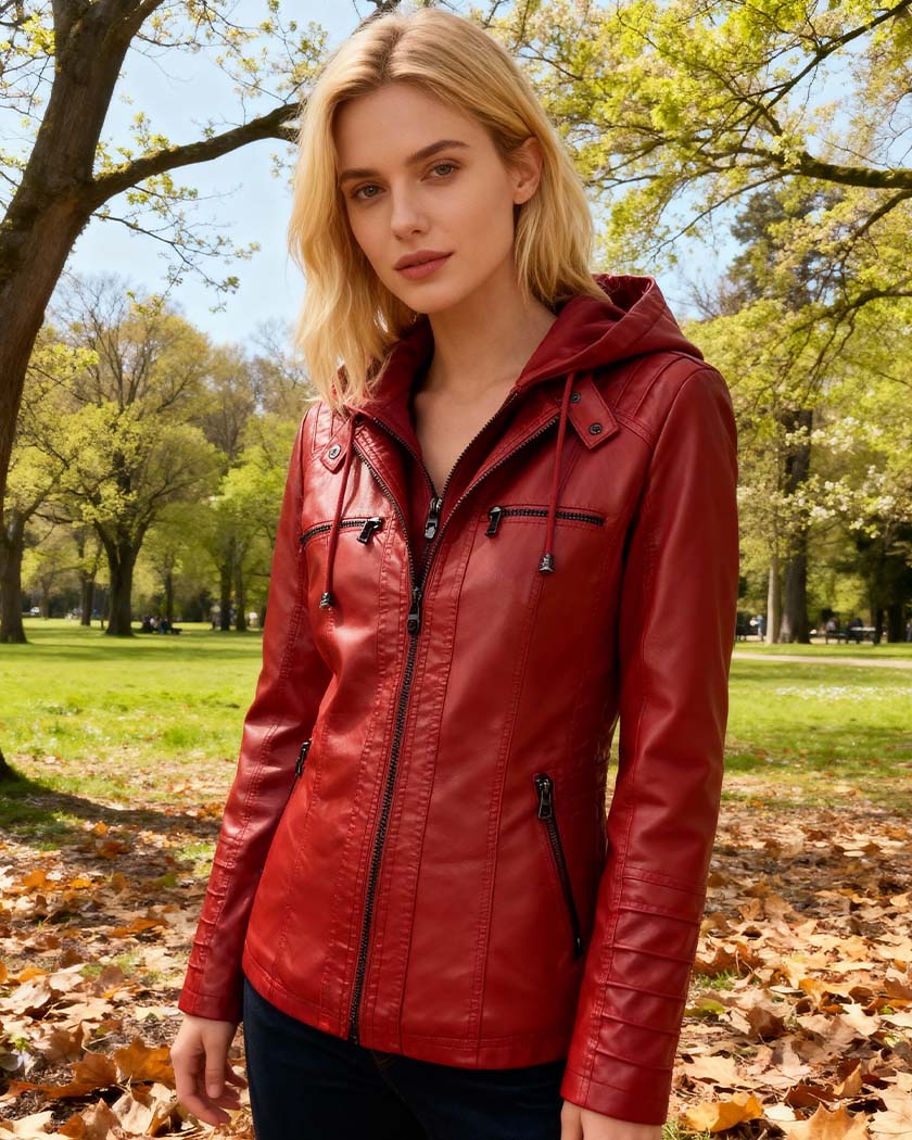 Revendiquez votre âme urbaine avec notre blouson en simili-cuir et à capuche amovible pour femme, où l’audace du style motard rencontre l’intelligence fonctionnelle. Sa capuche détachable s’adapte à vos humeurs et à la météo, tandis que son cuir vegan sculpte une silhouette qui affirme votre liberté sans concessions.