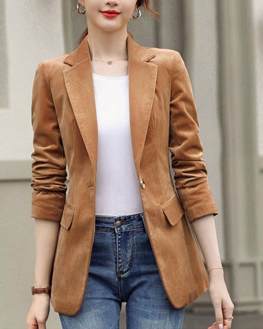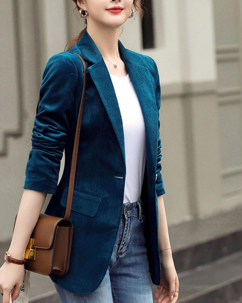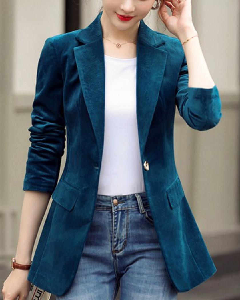 Osez l’élégance avec notre blouson en velours côtelé style blazer. Tendance et confortable, il est parfait pour compléter votre garde-robe pour la mi-saison. Son col à rabat et son boutonnage simple ajoutent une touche chic à son design, vous permettant de briller avec style lors de vos sorties.