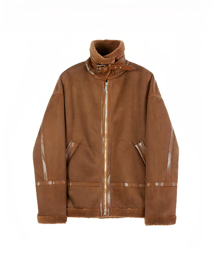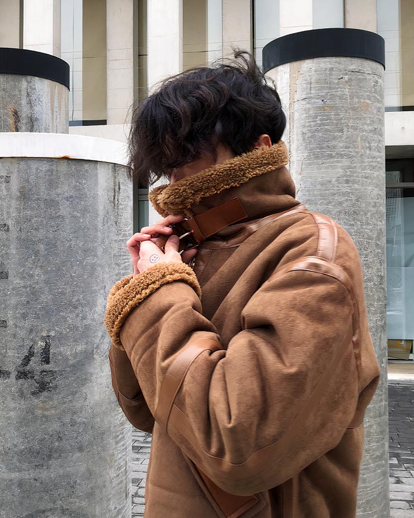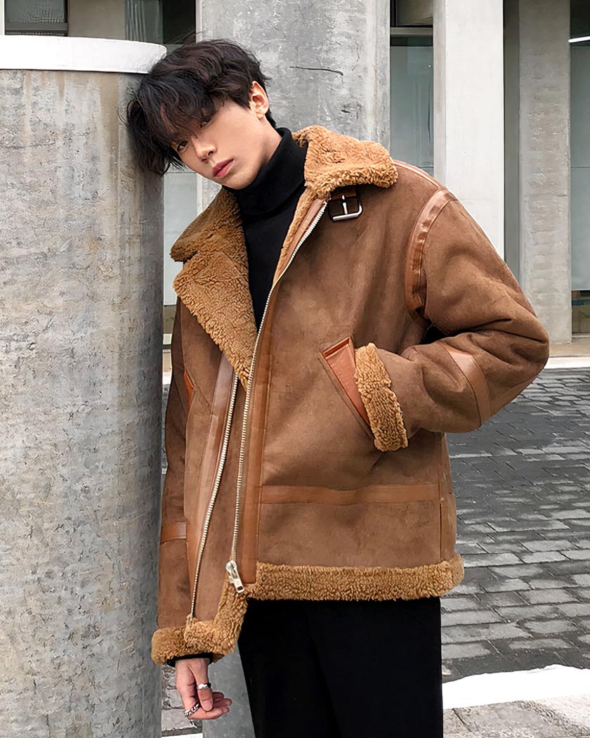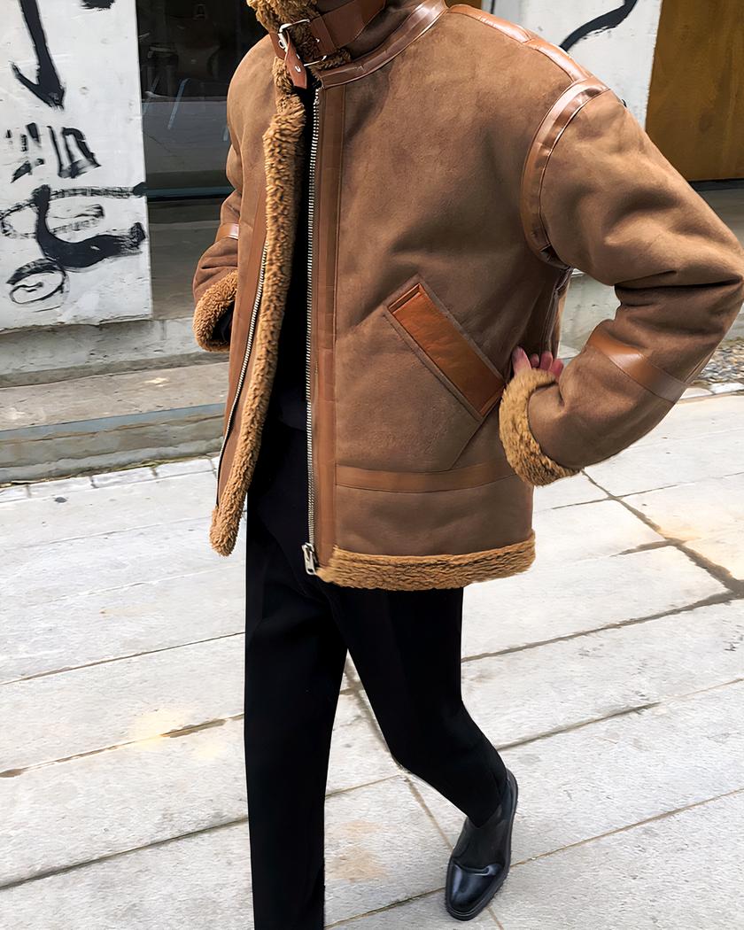 Blouson imitation daim homme avec col à revers en peluche