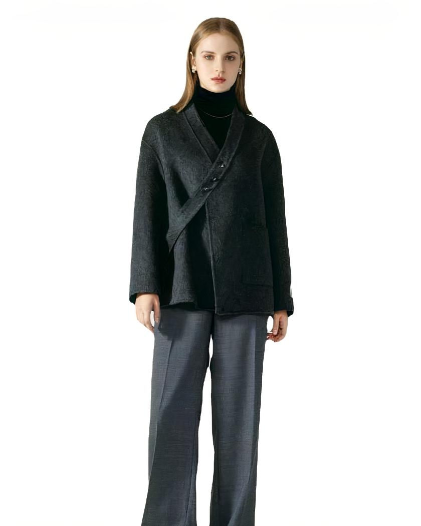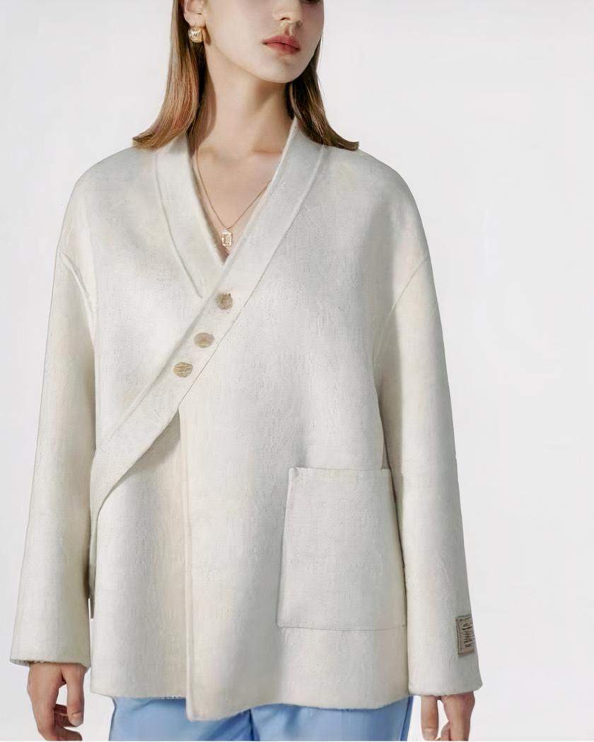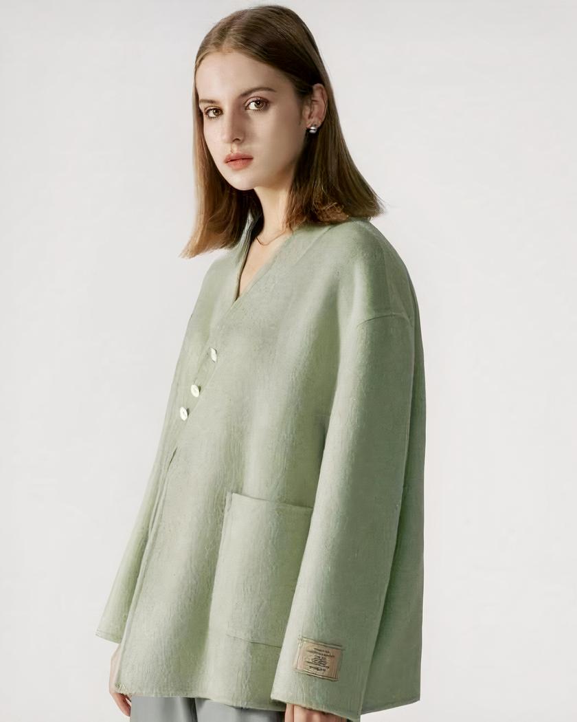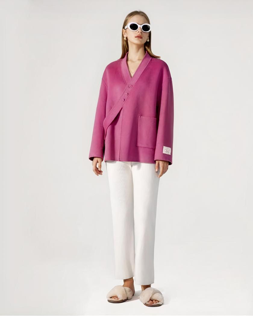 Découvrez le blouson en laine pour femme avec boucle oblique, une pièce d’hiver incontournable. Fabriqué en 100% laine, ce blouson à boutonnage simple est ample, doux et confortable. Disponible en plusieurs couleurs attrayantes telles que le vert, le rose, le noir et le blanc.