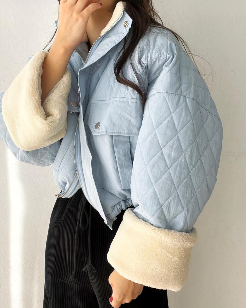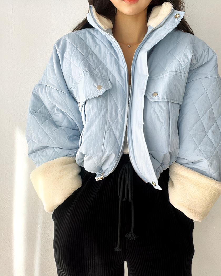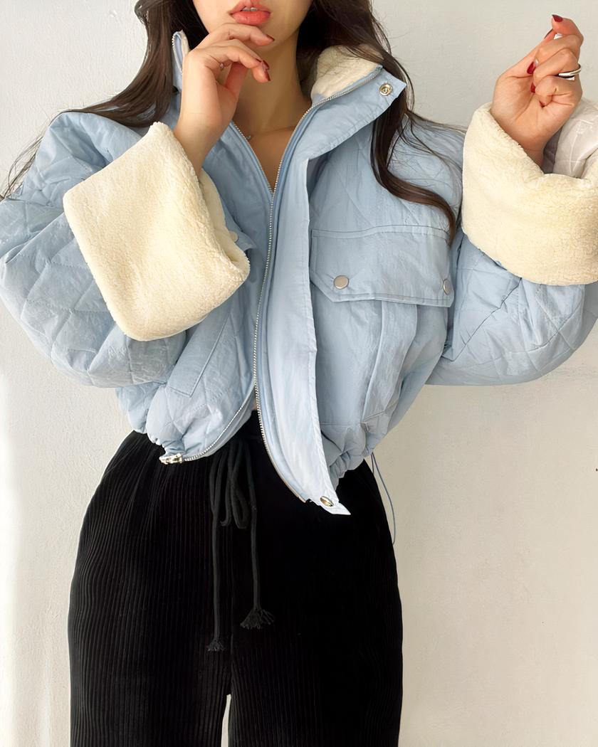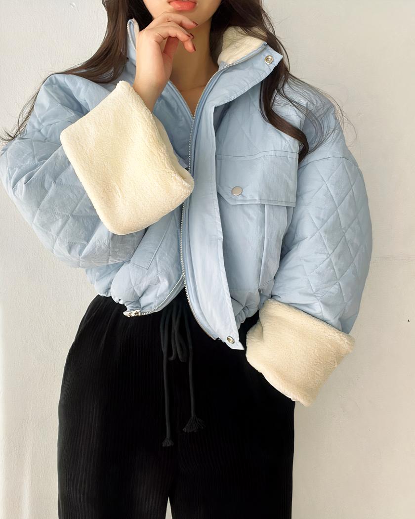 Soyez le premier à laisser votre avis sur “Blouson matelassé femme court avec coupe bouffante et ourlet manche polaire bleu”