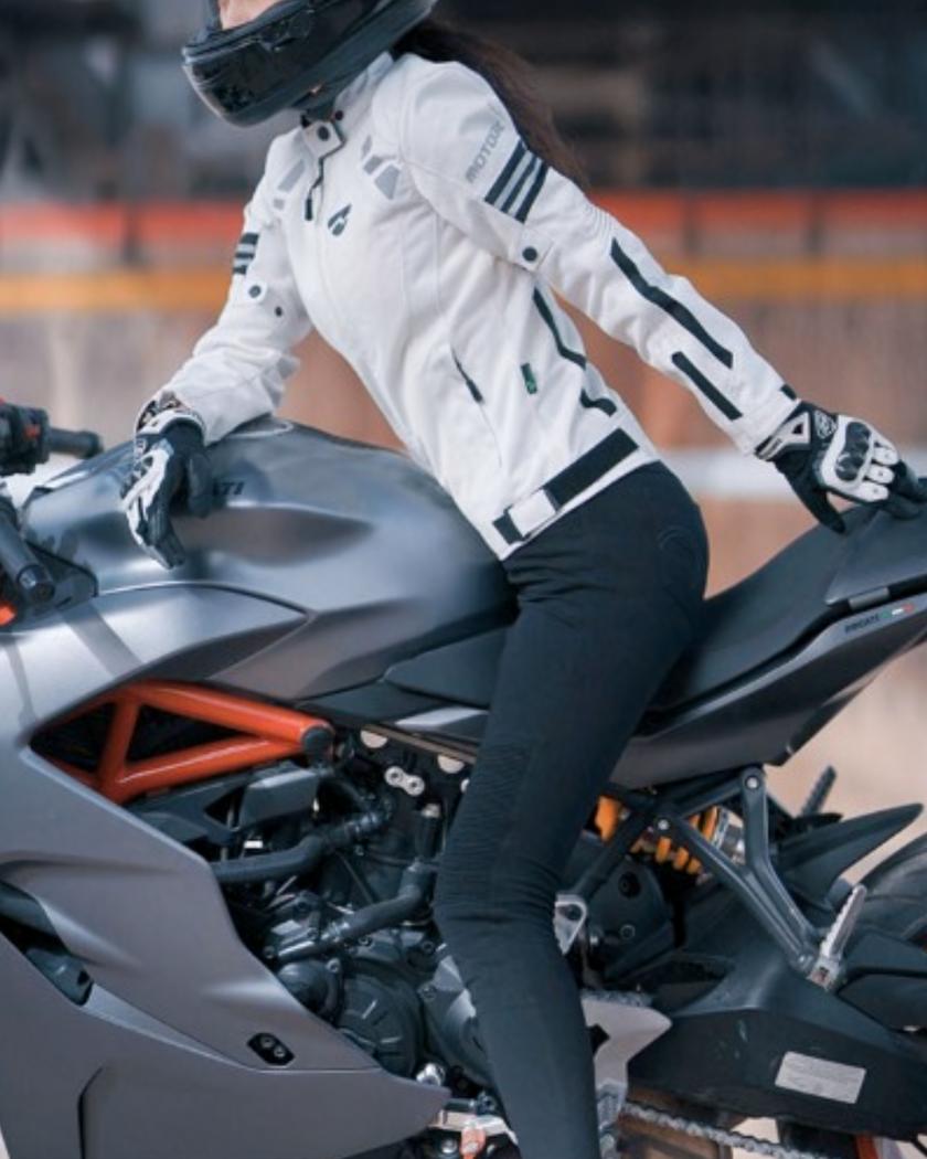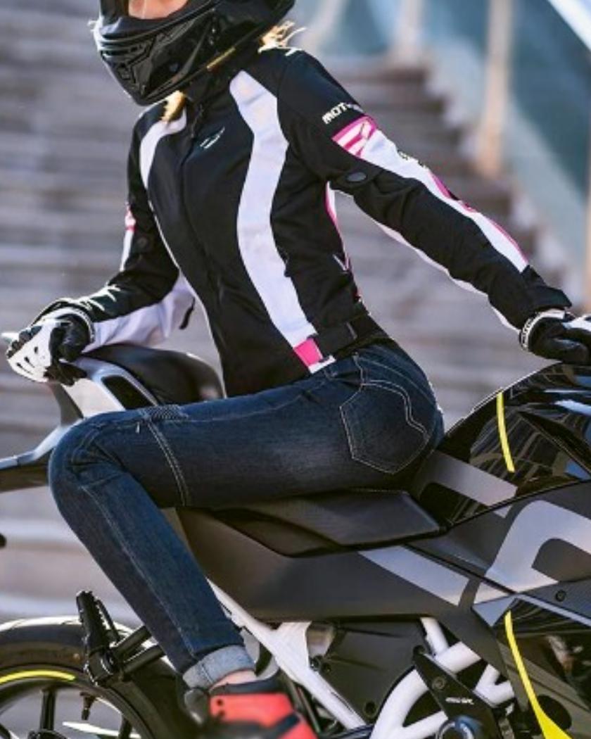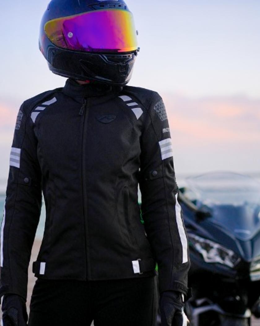 Blouson moto femme avec bandes réfléchissantes