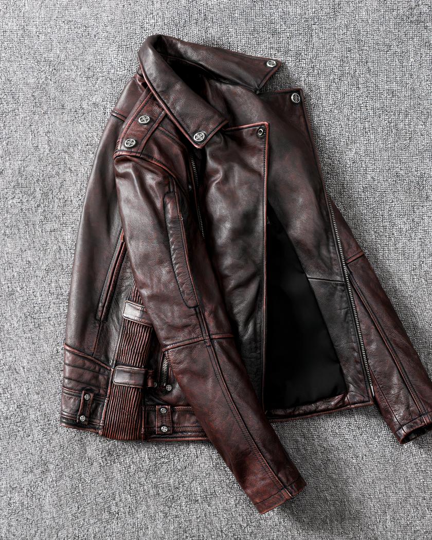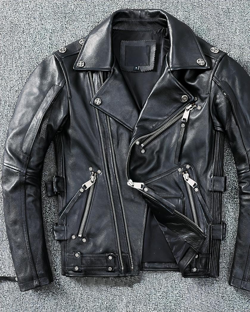 Retrouvez votre côté audacieux et subtil avec notre blouson perfecto en cuir style motard, une pièce incontournable pour les hommes modernes. Sa coupe ajustée garantit un look impeccable, parfait pour les hommes qui aiment prendre soin d’eux. Optez pour la confiance et le style avec notre blouson en cuir d’exception.