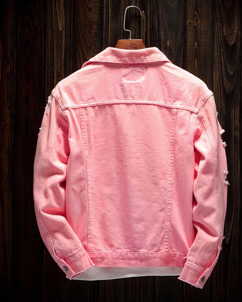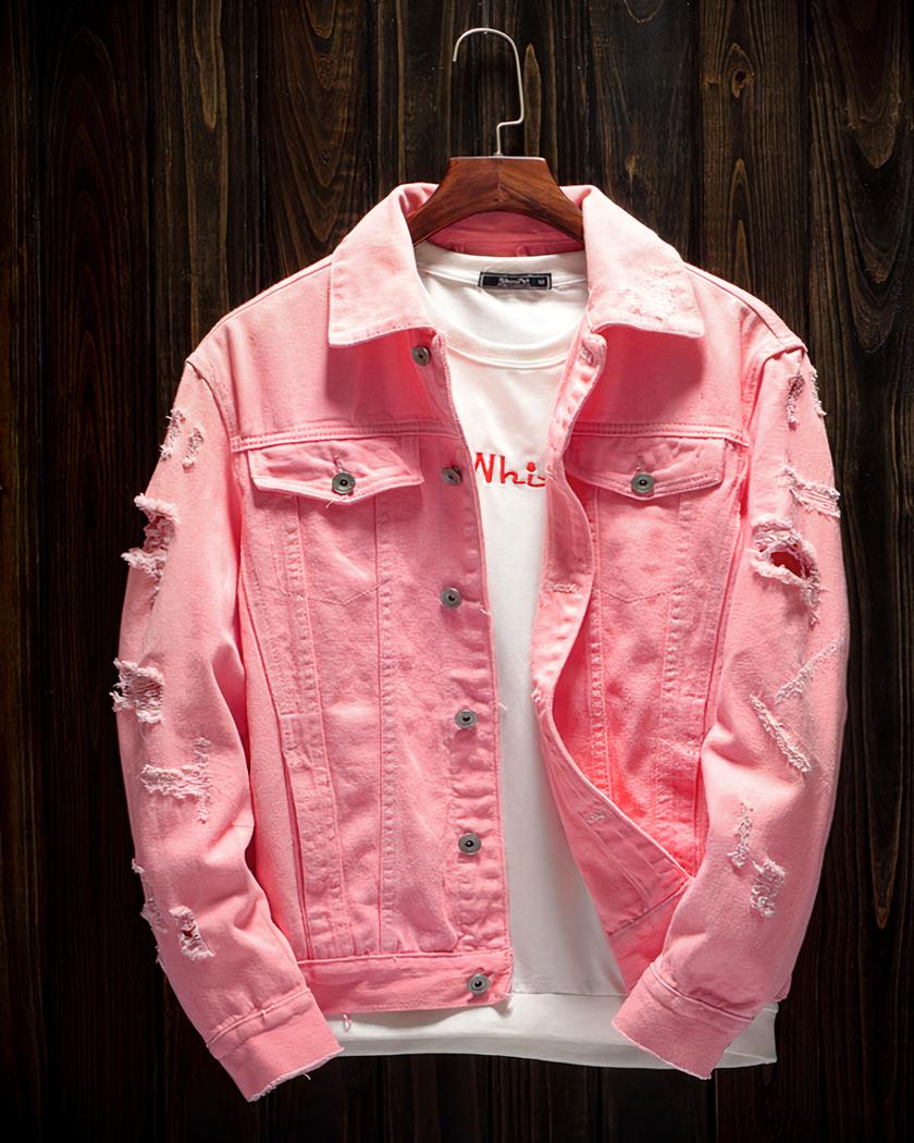 Soyez le premier à laisser votre avis sur “Blouson rose en jean avec trous et déchirures pour homme”