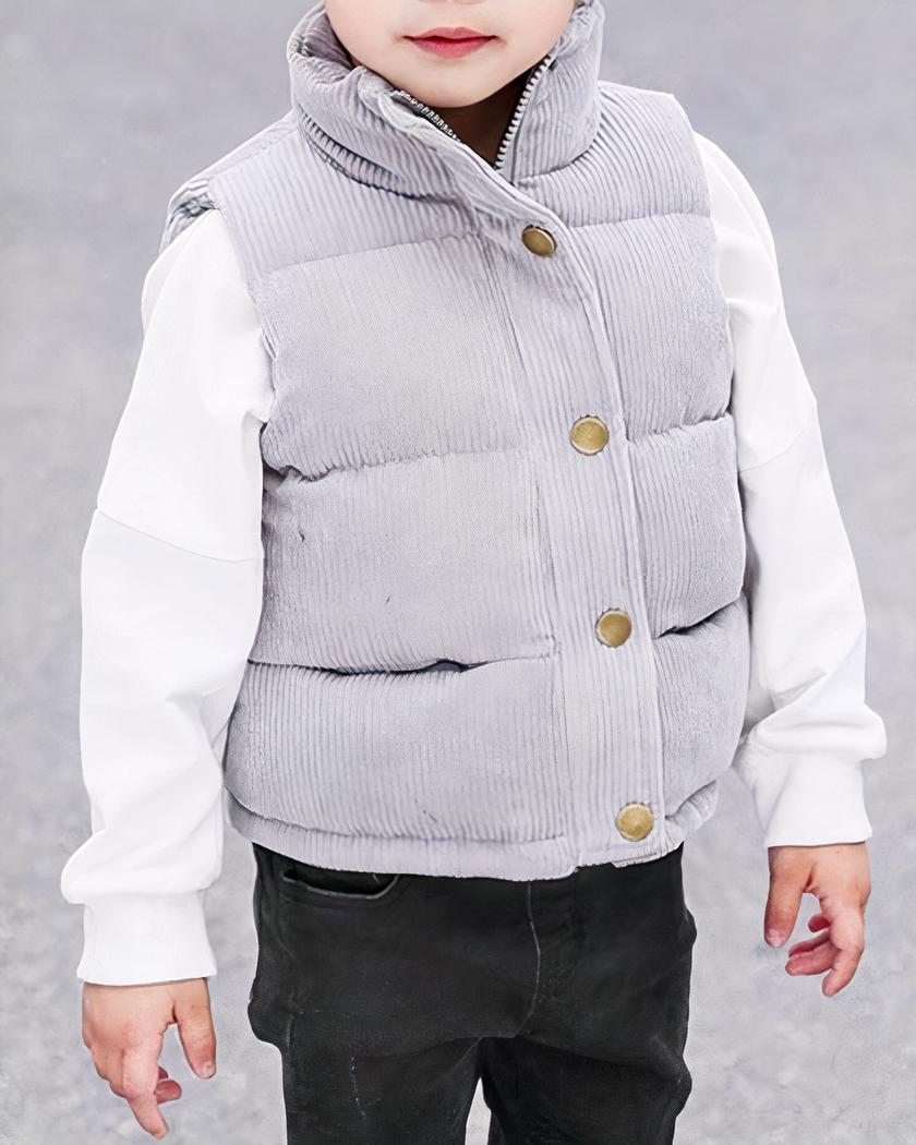 Le blouson sans manches matelassé en velours côtelé pour enfant est un vêtement à la fois élégant et pratique, conçu spécialement pour les plus jeunes. Fabriqué avec soin à partir de matériaux de haute qualité, ce blouson offre un confort optimal tout en ajoutant une touche de style à n’importe quelle tenue.