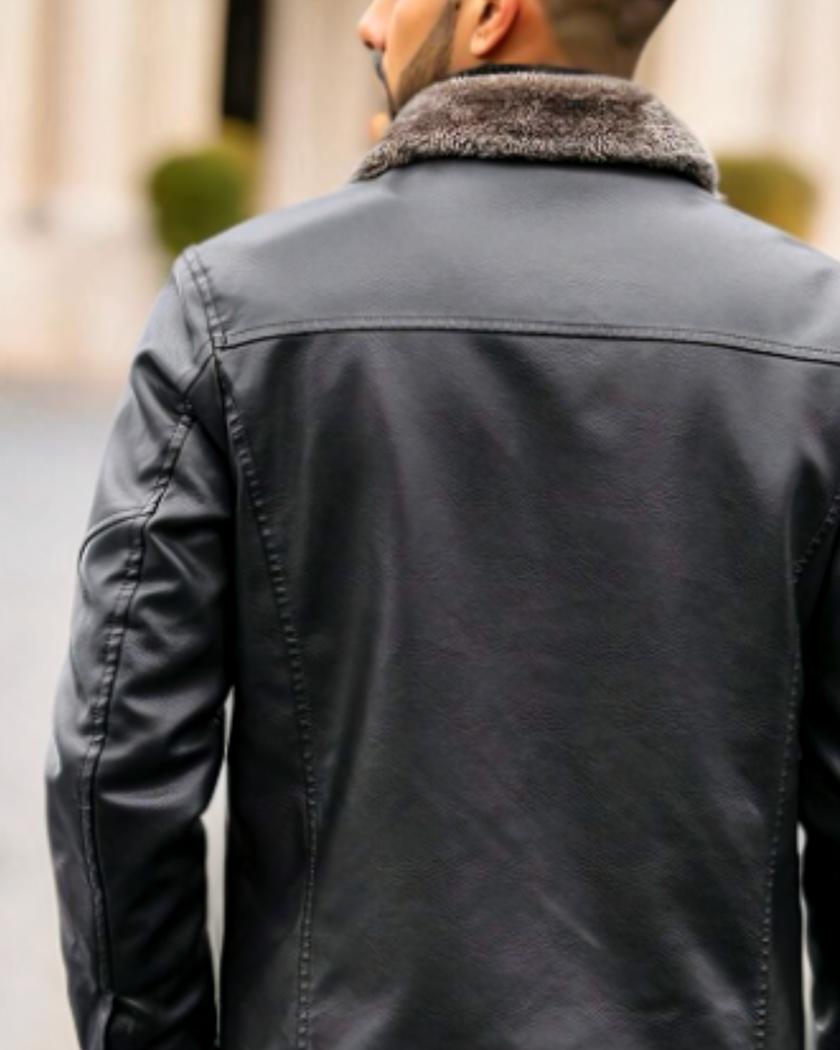 Soyez le premier à laisser votre avis sur “Blouson simili cuir à col fourré et style décontracté”