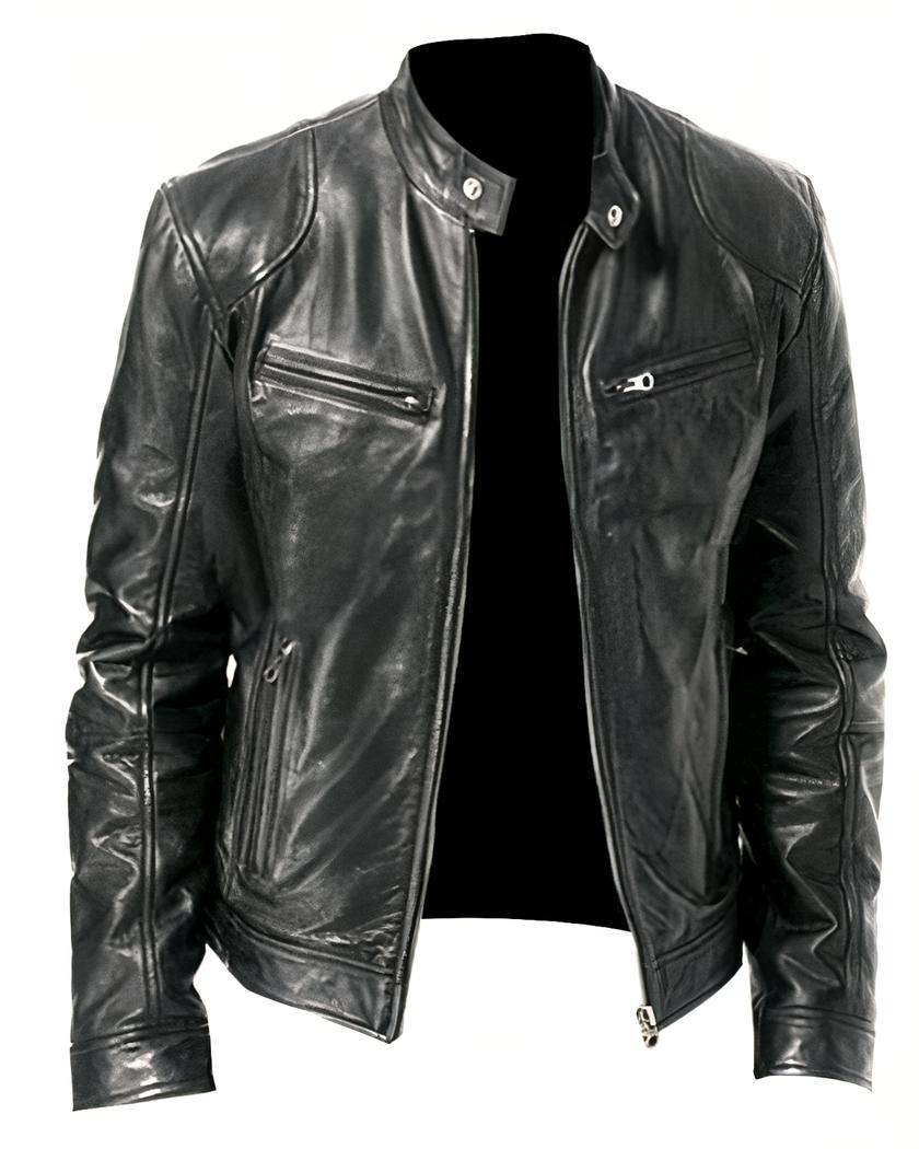 Le blouson simili cuir à la mode avec col montant pour homme est un véritable symbole de style et de modernité. Fabriqué avec des matériaux d’excellente facture, il offre l’apparence élégante et sophistiquée du cuir véritable. Son col montant ajoute une touche d’originalité et de chaleur, tout en protégeant votre cou des intempéries.