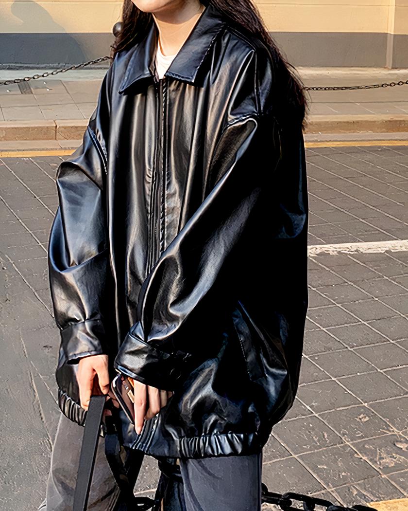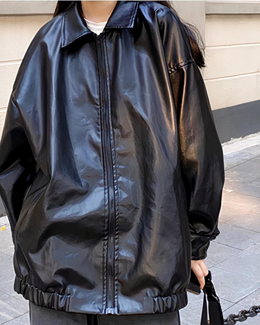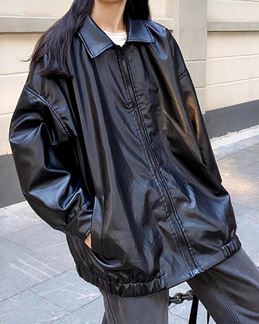 Blouson simili cuir femme ample noir
