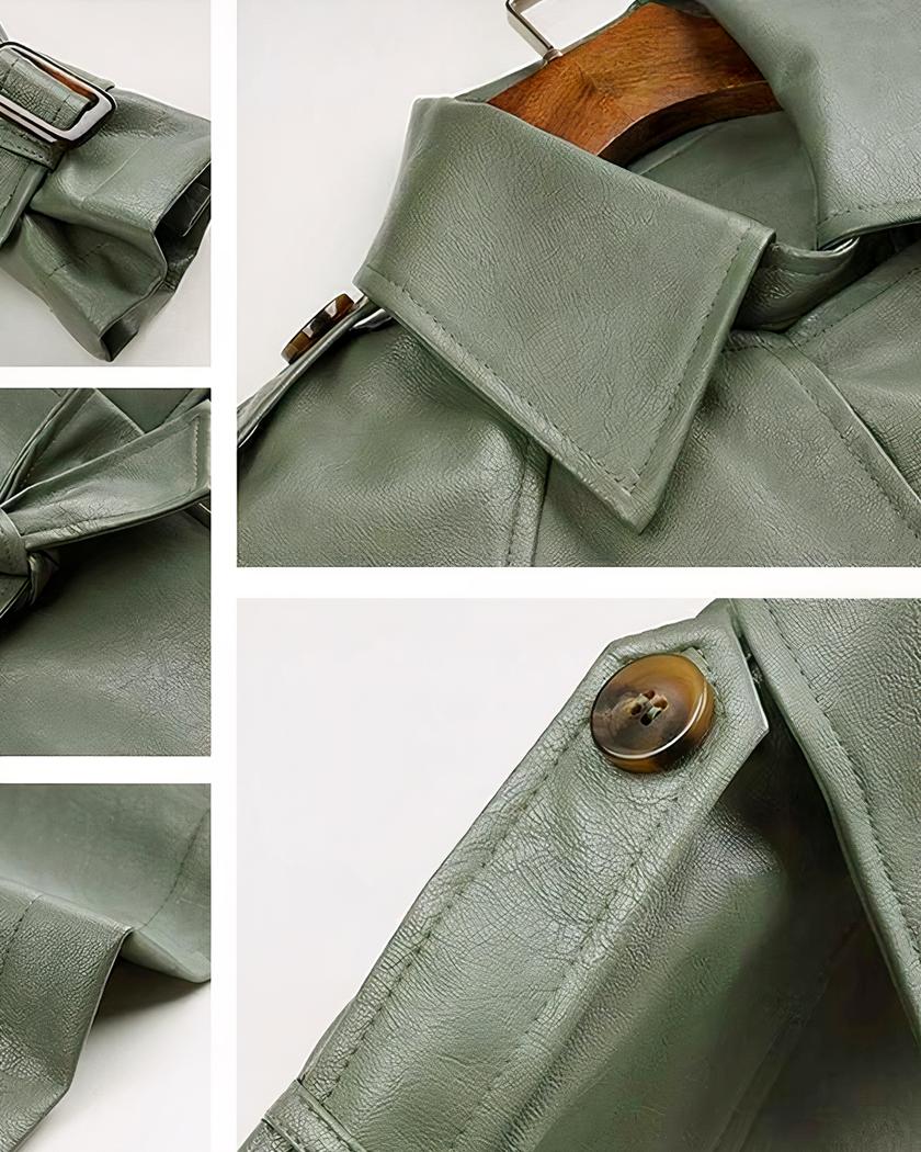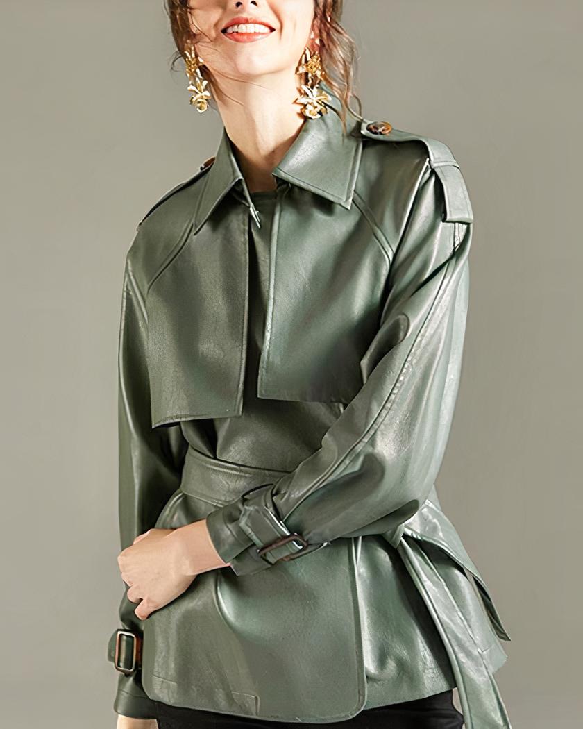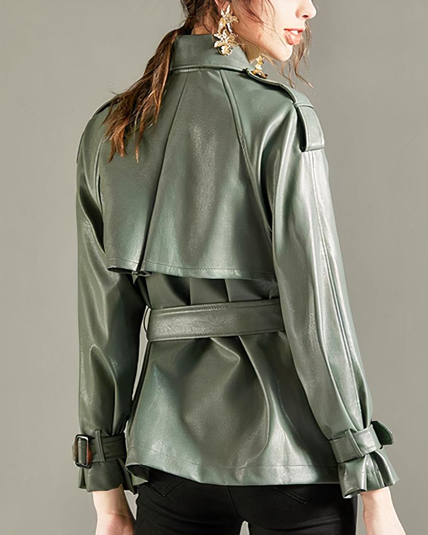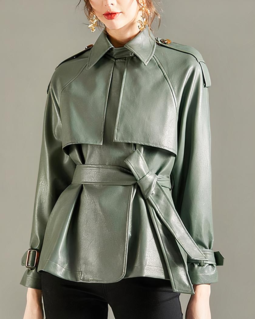 Blouson simili cuir femme avec ceinture