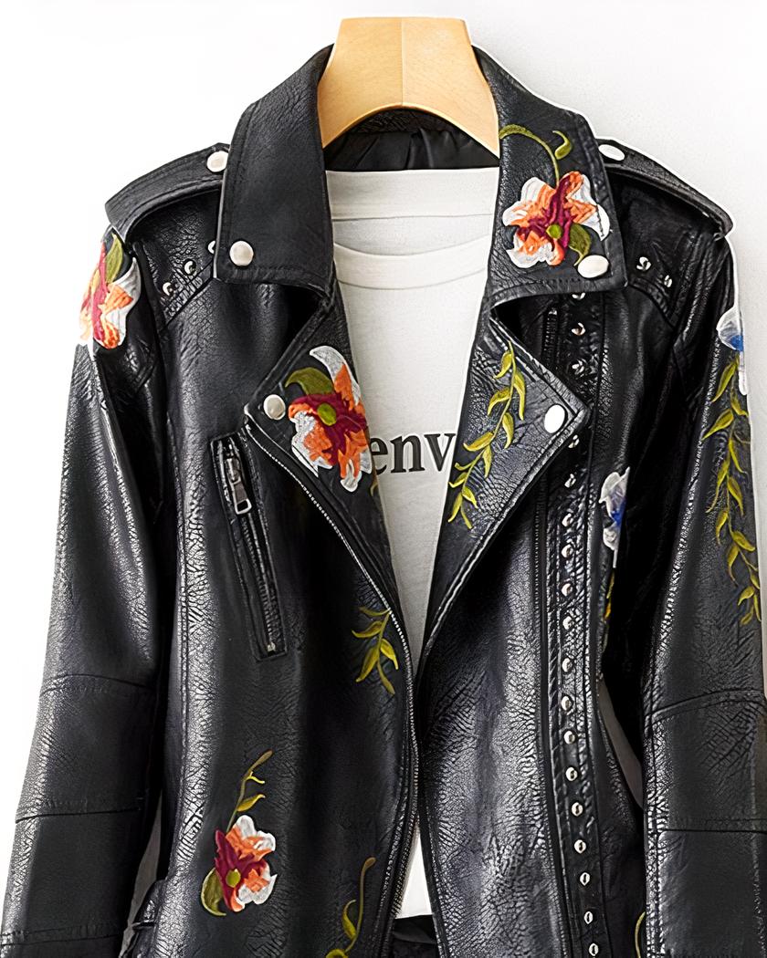 Le blouson simili cuir femme avec motif floral brodé est un véritable chef-d’œuvre de style et d’élégance. Conçu pour les femmes modernes qui recherchent à la fois confort et originalité, ce blouson est un incontournable de la garde-robe. Fabriqué à partir d’un simili cuir de haute qualité.
