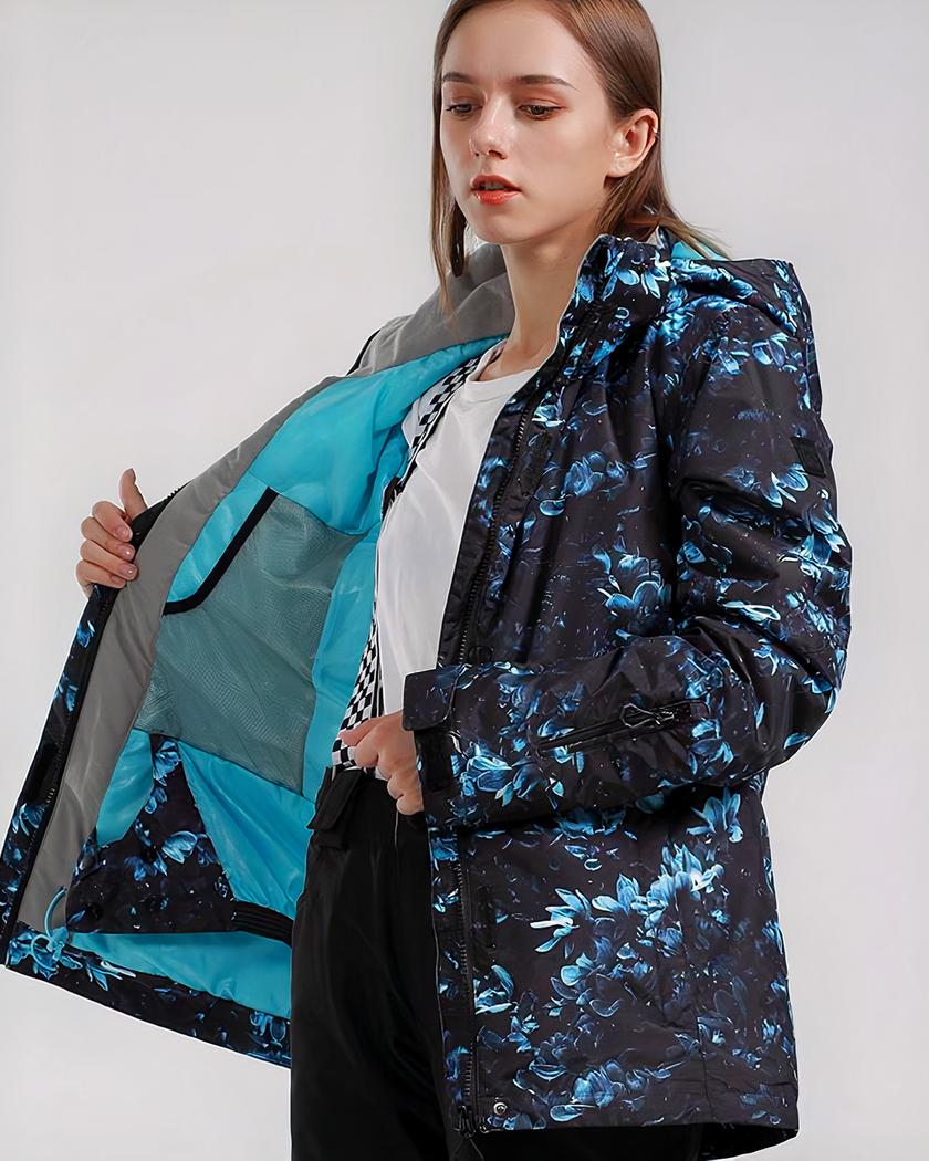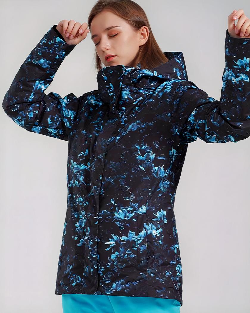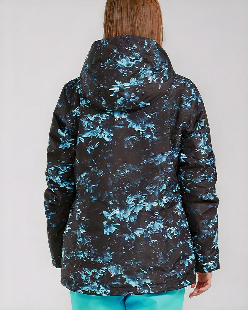 Blouson ski femme coupe-vent imperméable noir et bleu