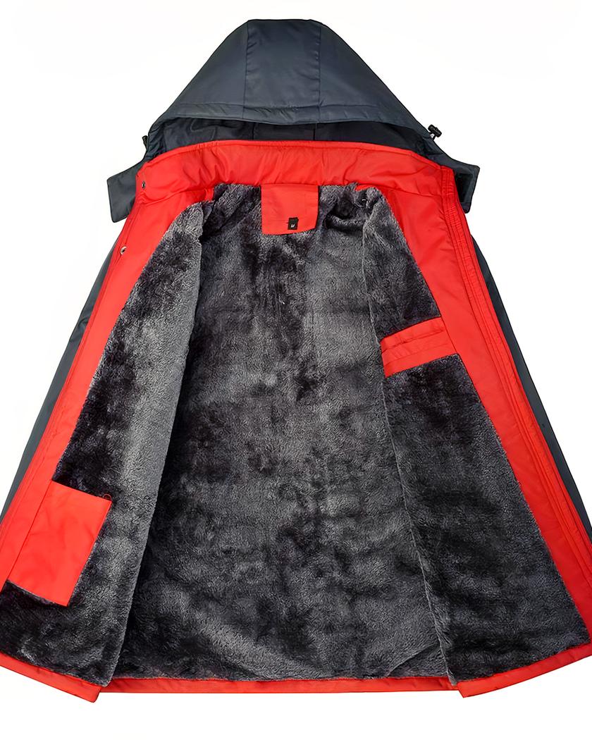Le blouson de ski pour homme, d’un élégant mélange de rouge et de noir, est votre allié idéal contre le froid. Imperméable et coupe-vent, avec une capuche pour une protection supplémentaire, il est doublé de polaire pour une chaleur maximale. Il dispose d’une fermeture à glissière pratique pour une utilisation facile.