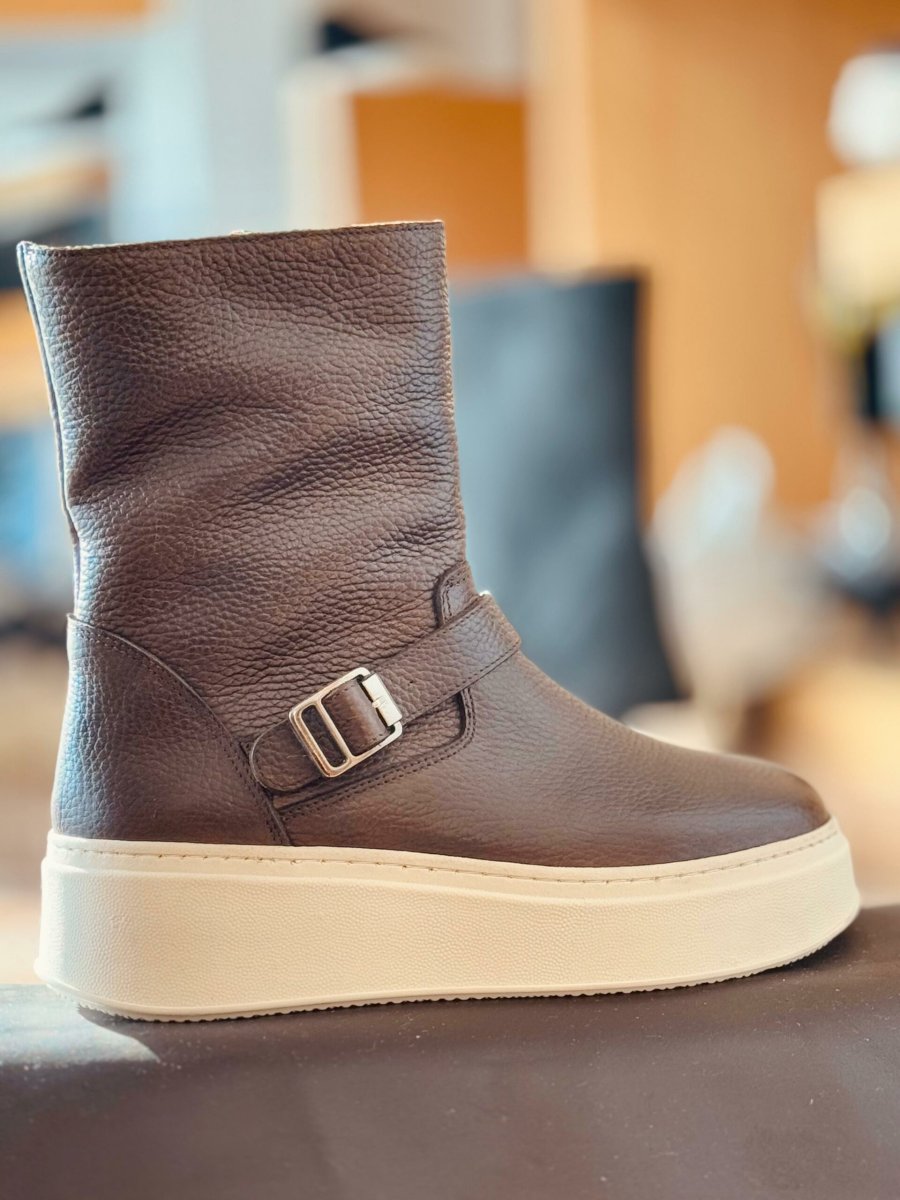 Les Boots en cuir Femme – Marron offrent un style intemporel et sophistiqué. Conçues pour allier confort et élégance, elles sont parfaites pour compléter vos looks hivernaux avec une touche de chic.