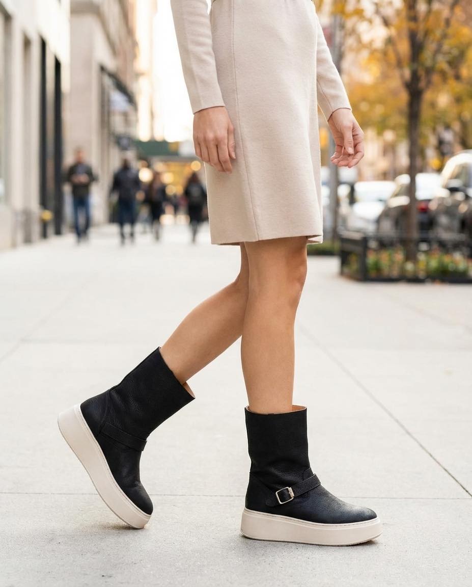 Les Boots en cuir Femme – Noir offrent un style intemporel et sophistiqué. Conçues pour allier confort et élégance, elles sont parfaites pour compléter vos looks hivernaux avec une touche de chic.